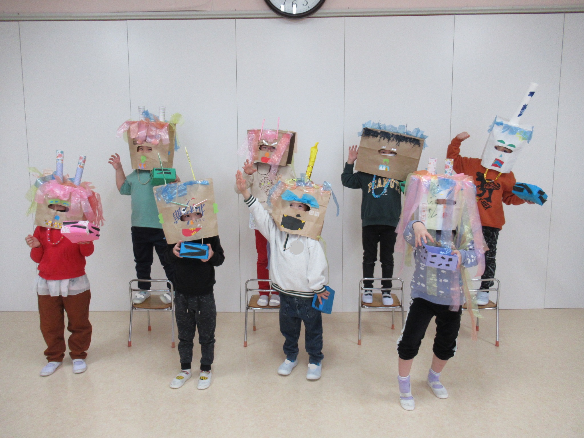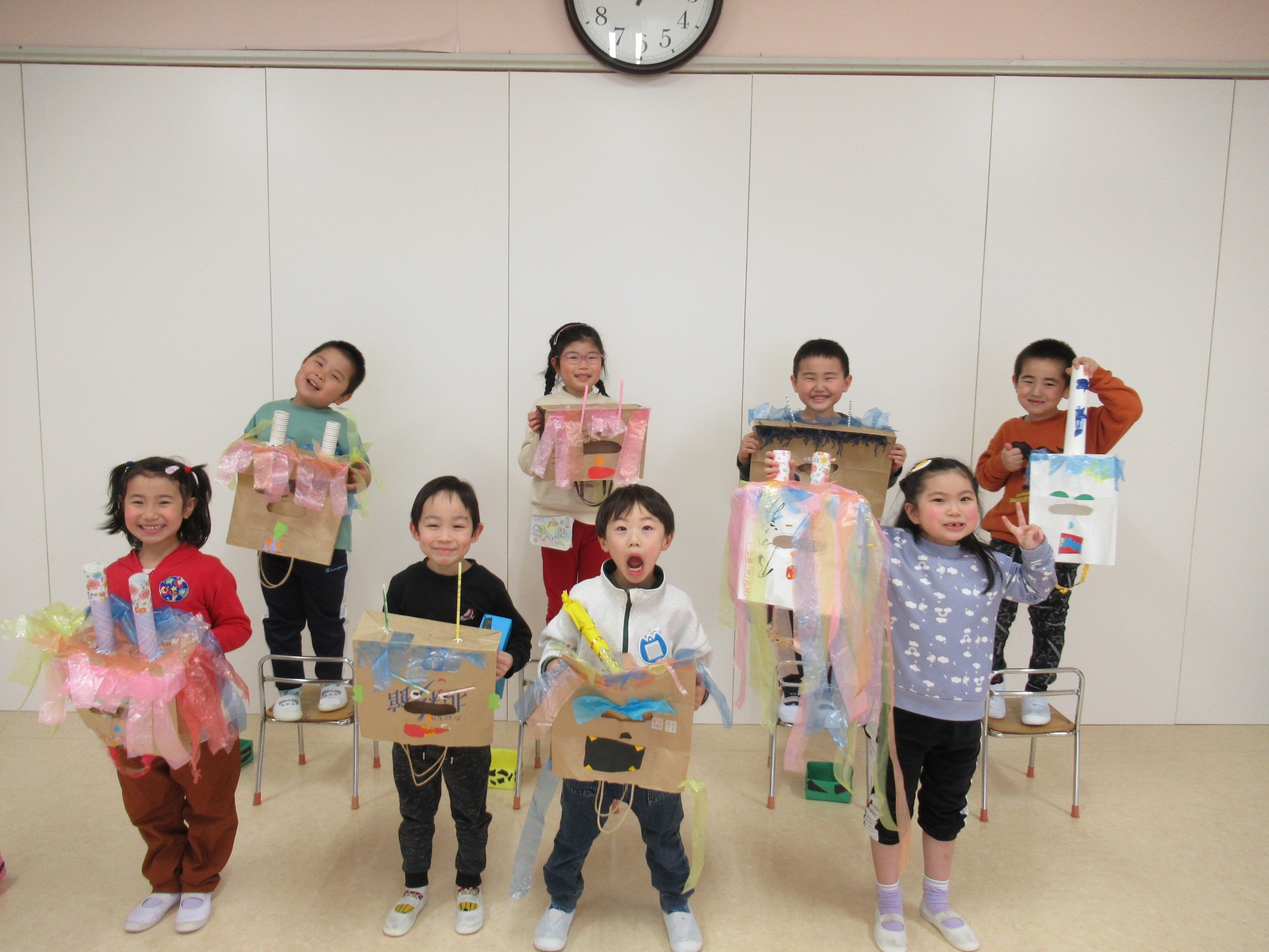 みんな自由に好きな鬼を作り、とても個性的なお面になりました。