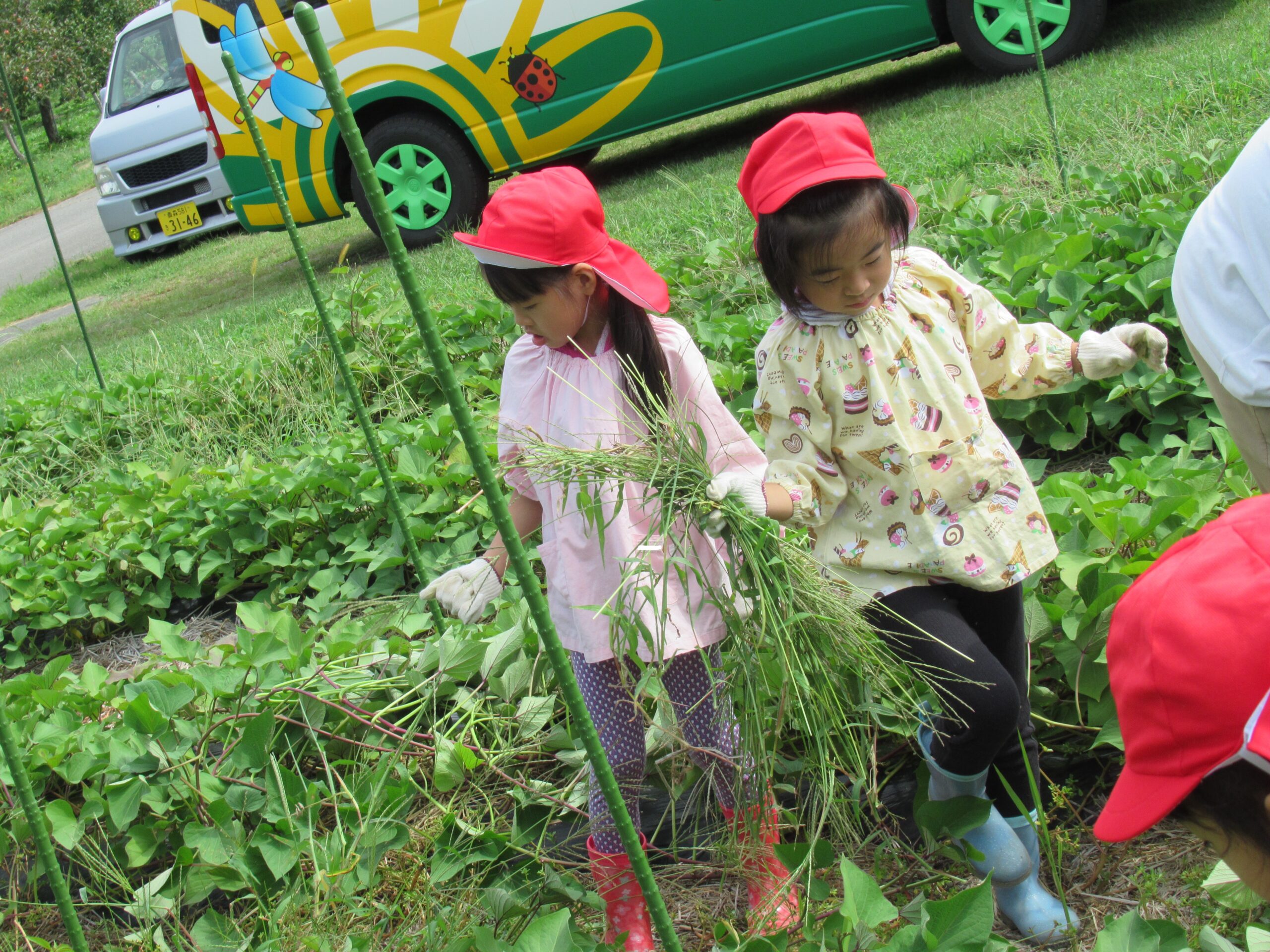 はと組は秋に収穫するさつまいもの草取りに行ってきました。
