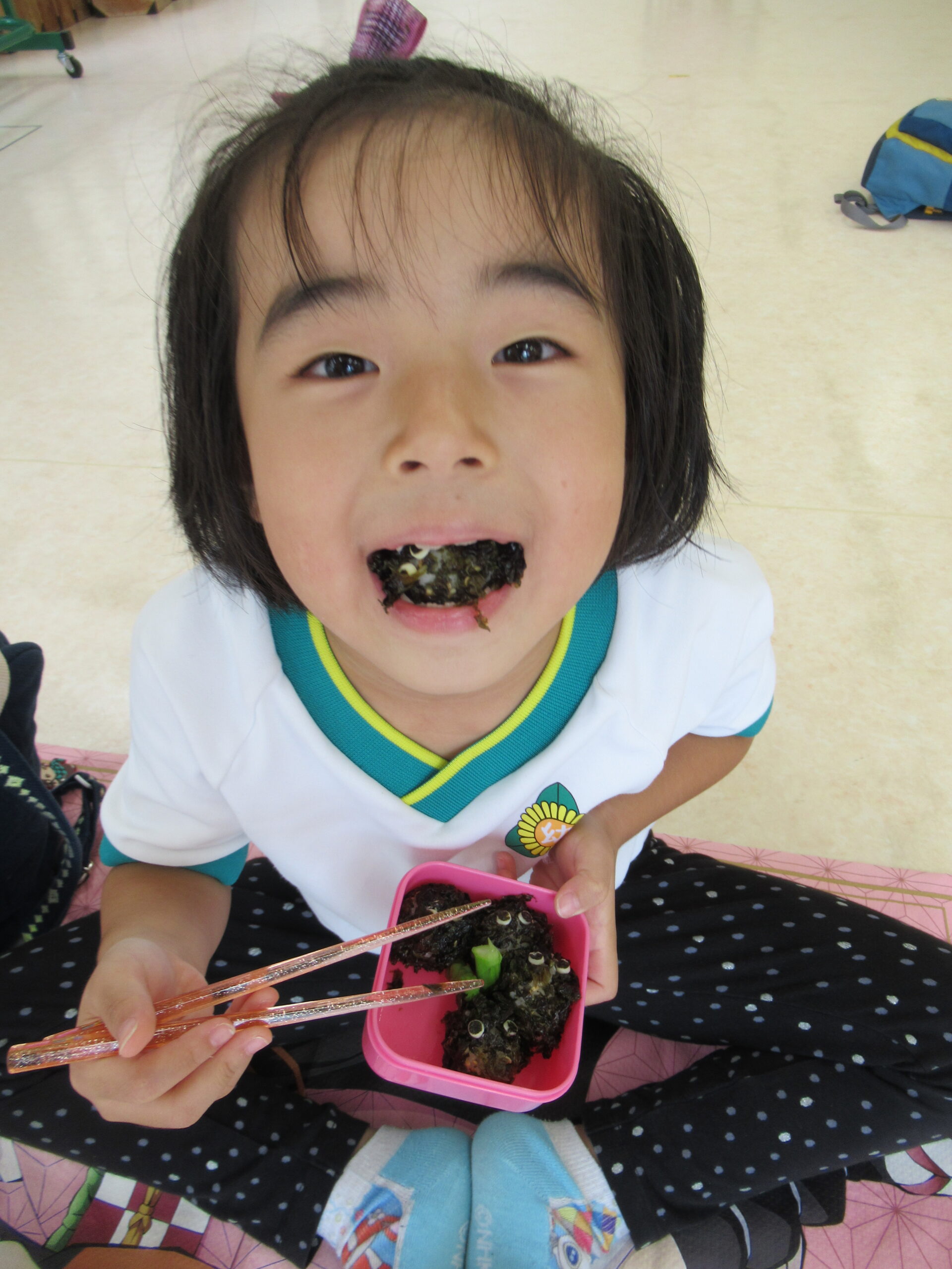 お家の人が作ったおいしいお弁当にみんなニコニコ😊