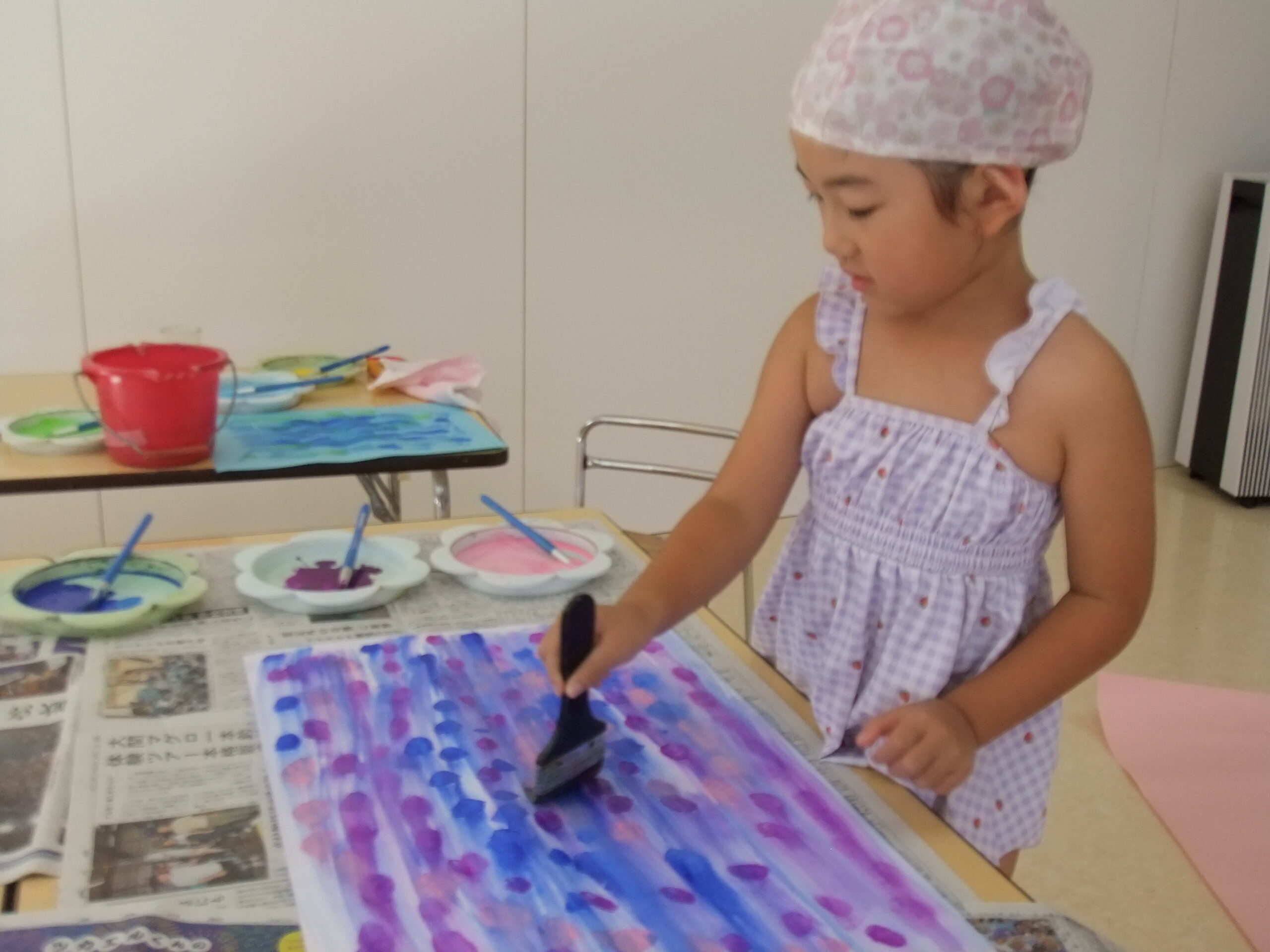 🌞夏の遊びを締めくくりました🌞 朝晩、涼しくなってきました。 園舎周辺の虫の鳴き声が、秋を感じさせています。 うさぎ組さんは、残り少なくなった暑さを利用して 手作りクレヨン(氷)でおえかき 絵の具とハケで、絵の具遊び その後は、 今シーズン最後の水遊びを楽しみました。 ハッピー畑もそろそろ終盤を迎えています。 ひよこさんと一緒に南瓜とナスの収穫をしてきました。 暑い中の作業後に食べたアイスは、とっても美味しかったね。 KODAK Digital Still Camera