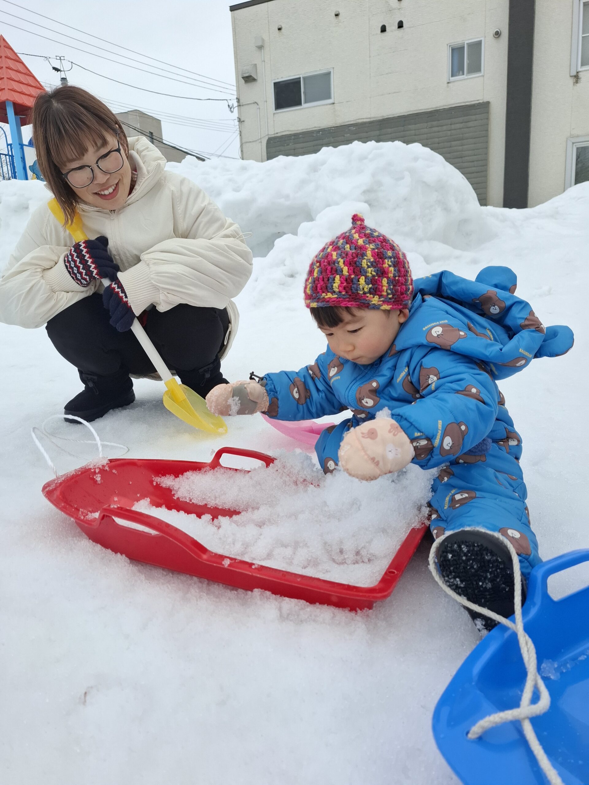 体をたくさん動かして雪あそびを楽しみました🎵