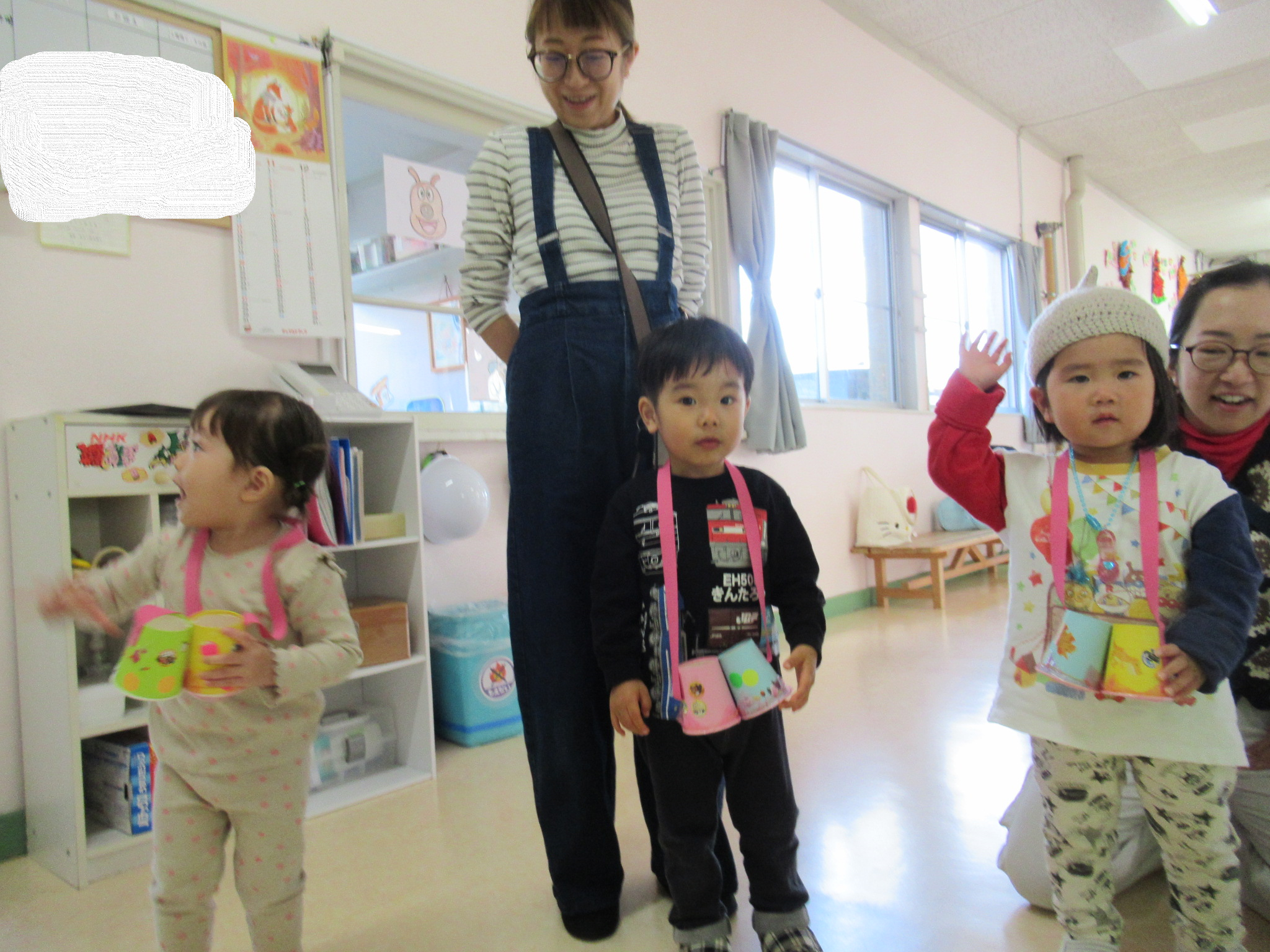 そして、出来上がった双眼鏡を持って、幼稚園を探検👀