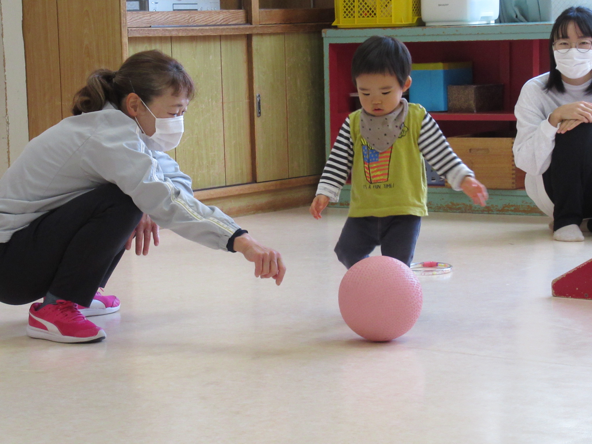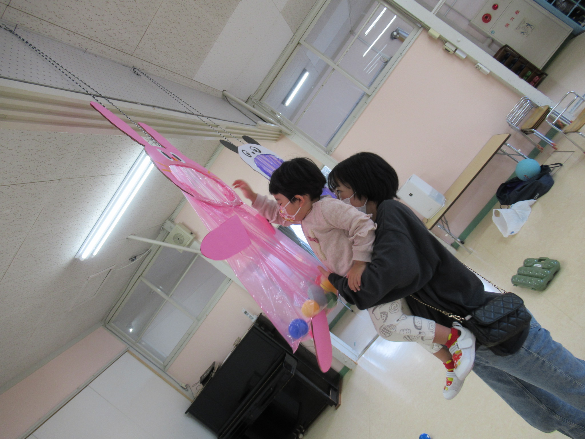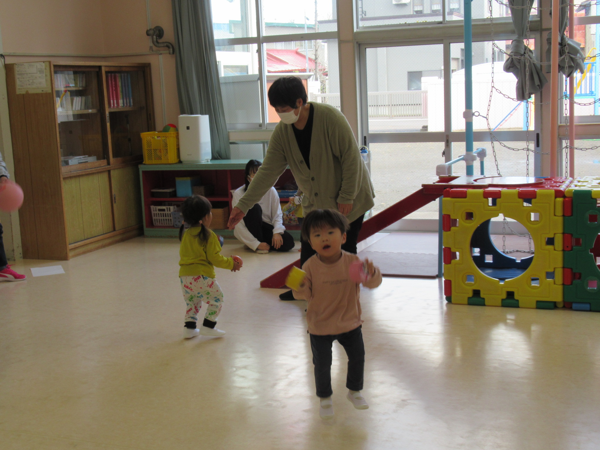 🌻11月24日 親子で一緒に遊ぼう🌻 今回のプチひまわりは「親子で一緒に遊ぼう」ということで 5人のお友だちと ボールを使って 遊びました! わっかを使って ボールをキャッチしたり⚾ ボールを キックしたり⚽ うさぎさんとパンダさんのお口にシュートしたり🏀 奈良先生が持ってきてくれた カラフルなボールに お友だちも興味津々で 遊んでいました🥎 たくさん体を動かして 楽しい時間となりました これから ますます寒くなっていきますが 元気に過ごせますように(o^―^o)☆