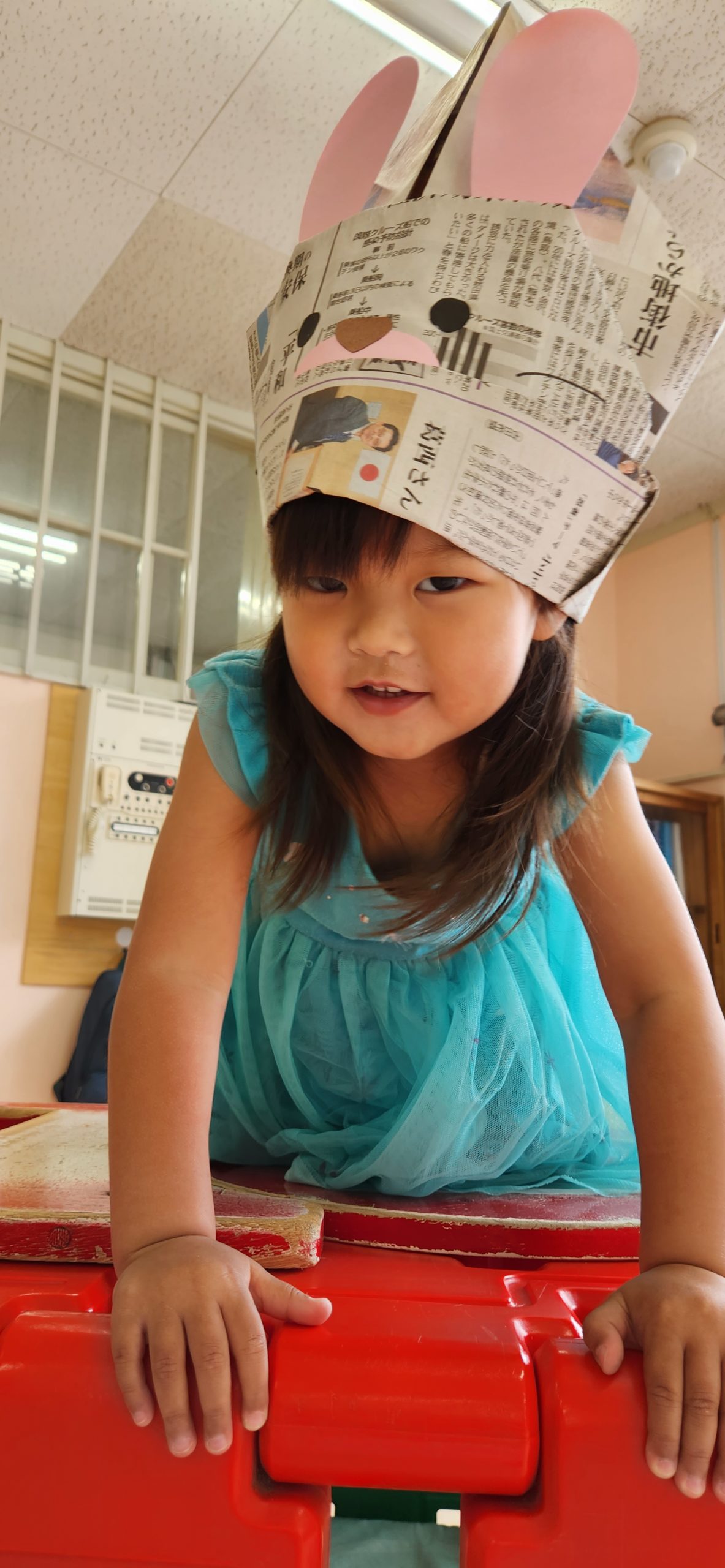 そして 人気だったのが 新聞紙で作った帽子👒