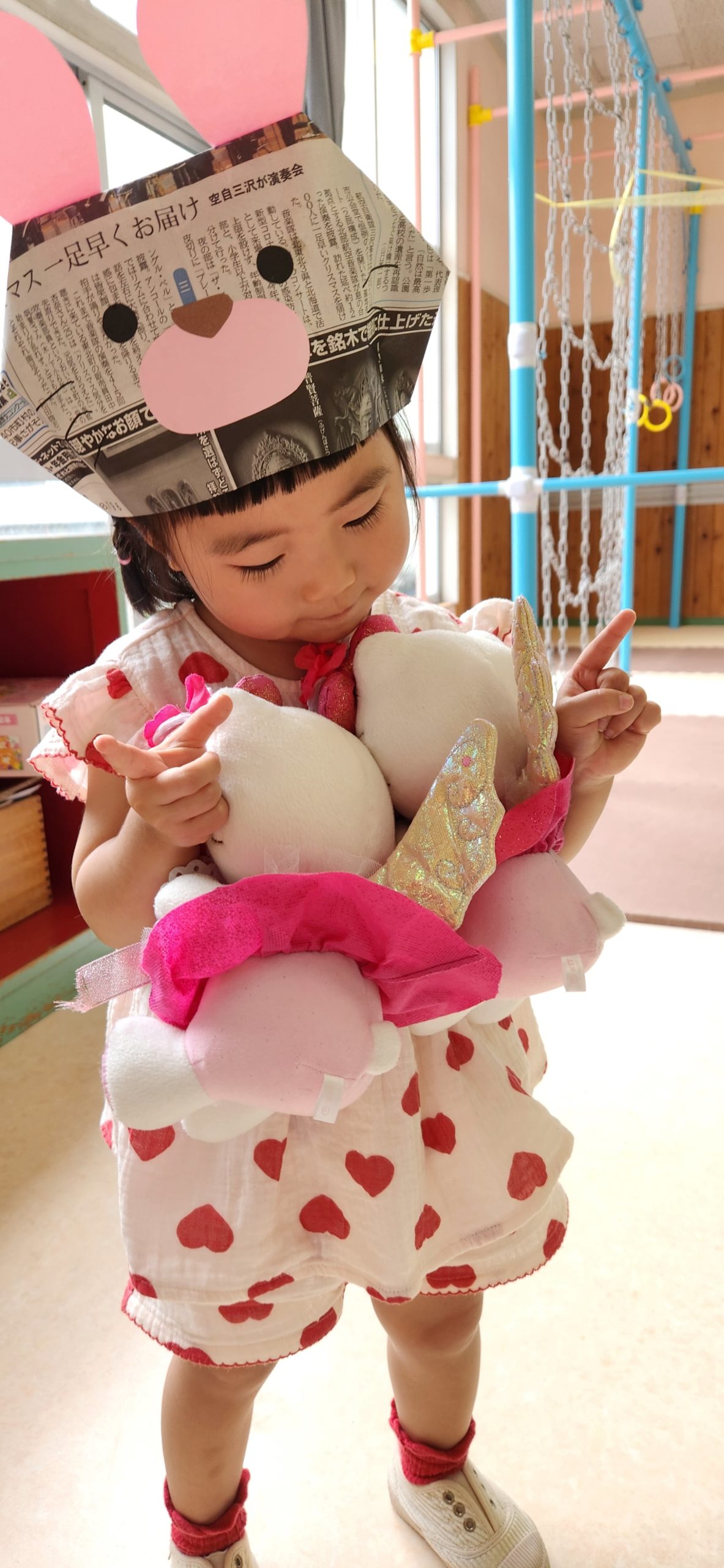 さて 今日のプチさんは「新聞紙を使って遊ぼう」ということで