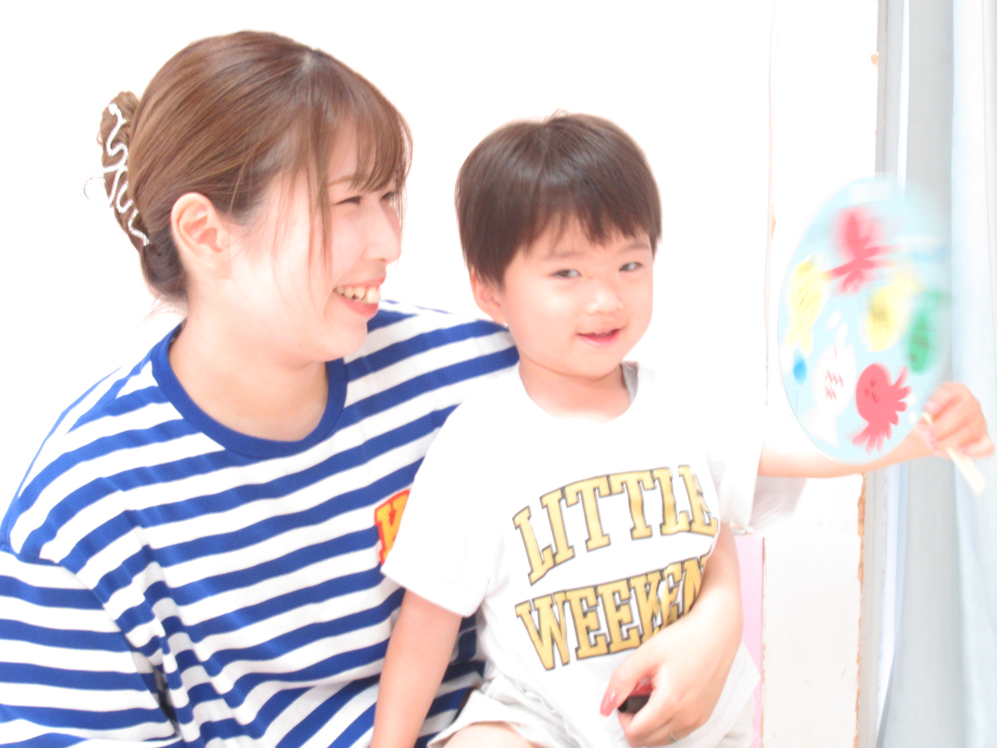 🌻7月6日 うちわを作ろう!🌻 7月6日のプチひまわりでは「うちわ作り」をしました。 お魚に目を描いて・・・ のりで貼って・・・ お魚うちわの完成です! 完成したうちわでパタパタ仰いだら、「涼しい!!」とお母さんたちは喜んでいましたよ💕 作ったうちわで👻ふうせんおばけ👻をやっつけて遊びました。「エイッ」 お魚つりも楽しかったね。 次回は7月21日(金)16:00~17:15 「幼稚園のお友だちと一緒に夏祭りを楽しもう!」です。 プチひまわりで作ったうちわを持って盆踊りをしたり、ゲームをして楽しみましょう。