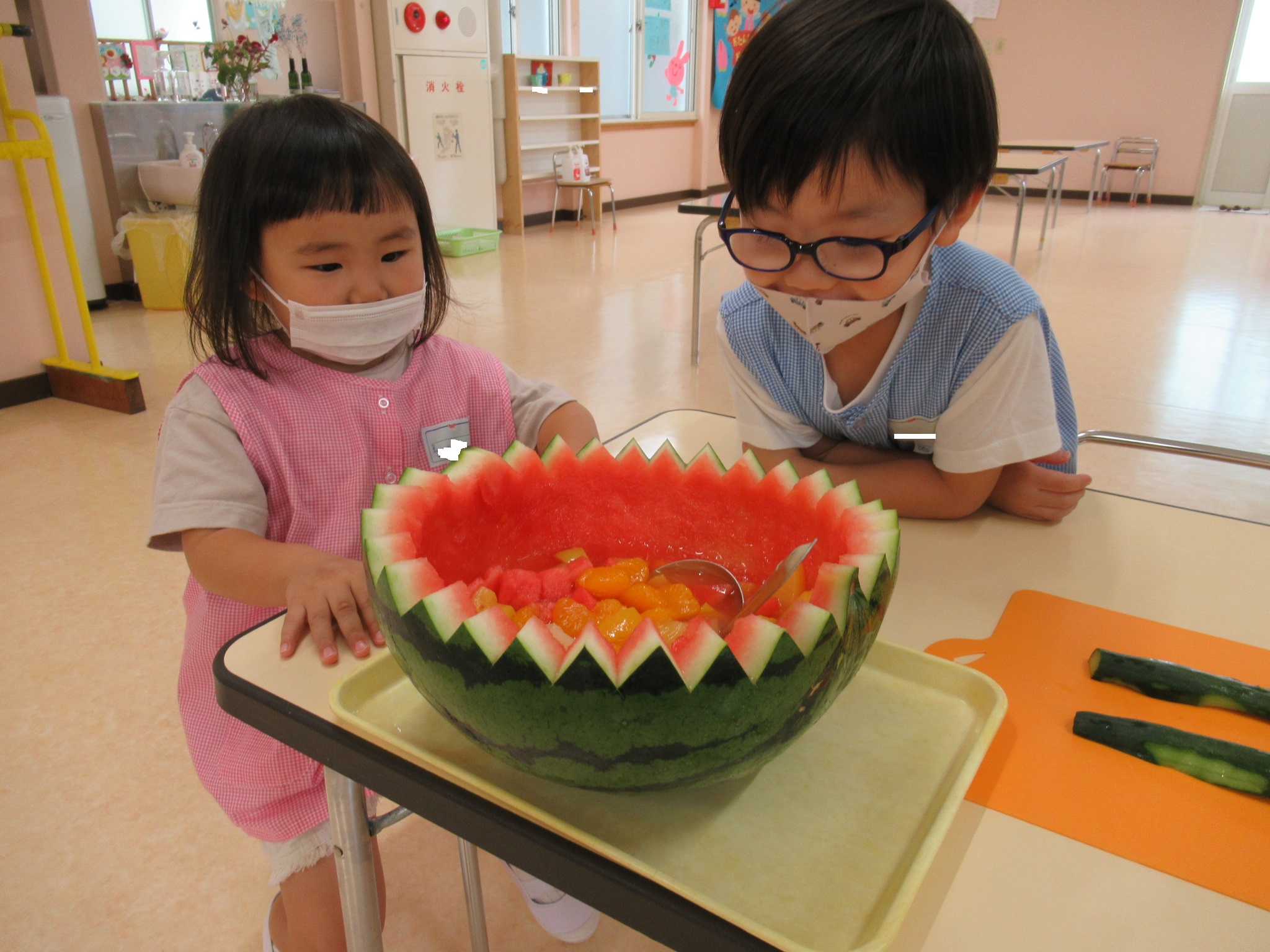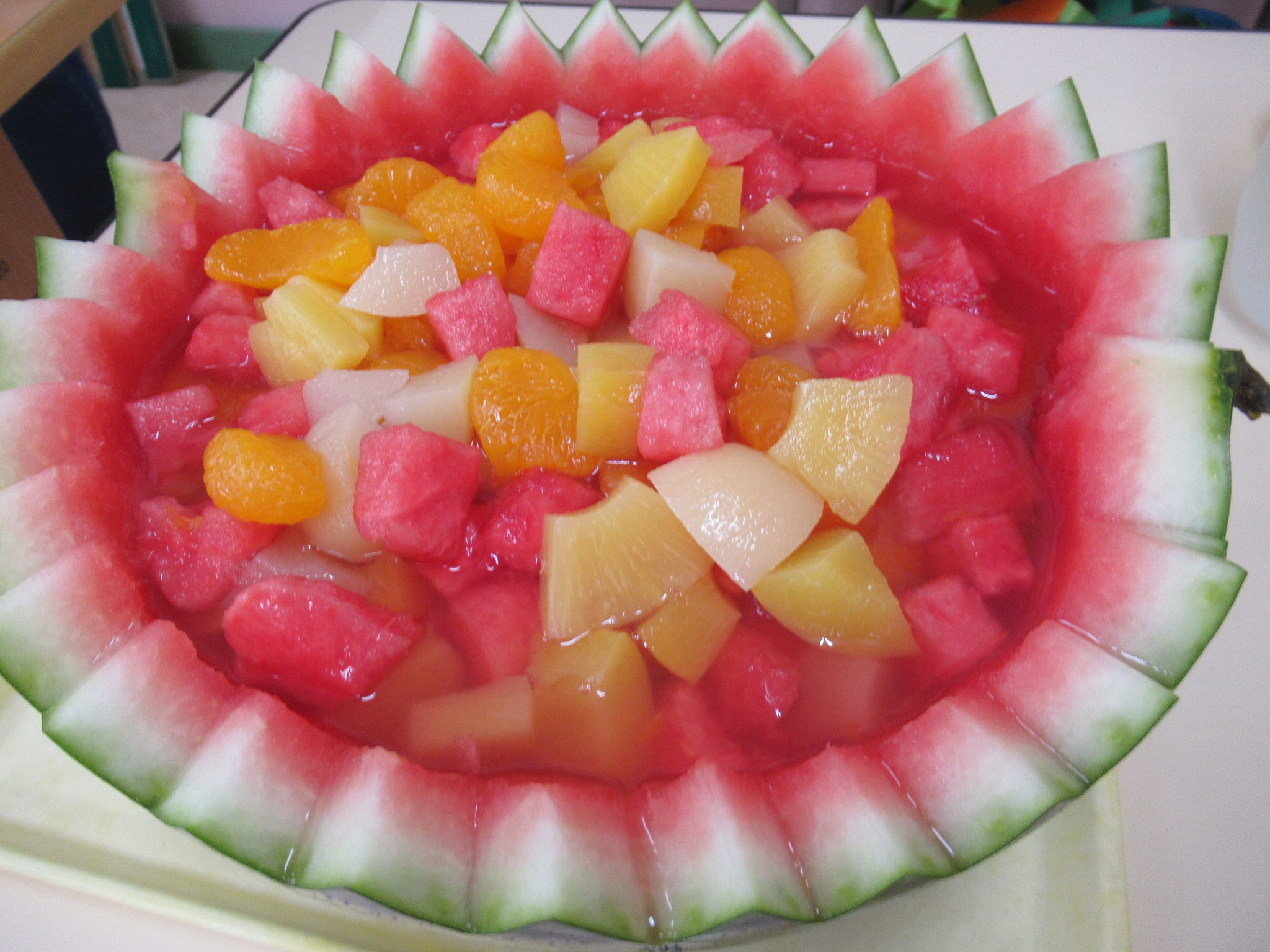 お昼のデザートは、絵本で見つけて食べたいと言っていたフルーツポンチ登場