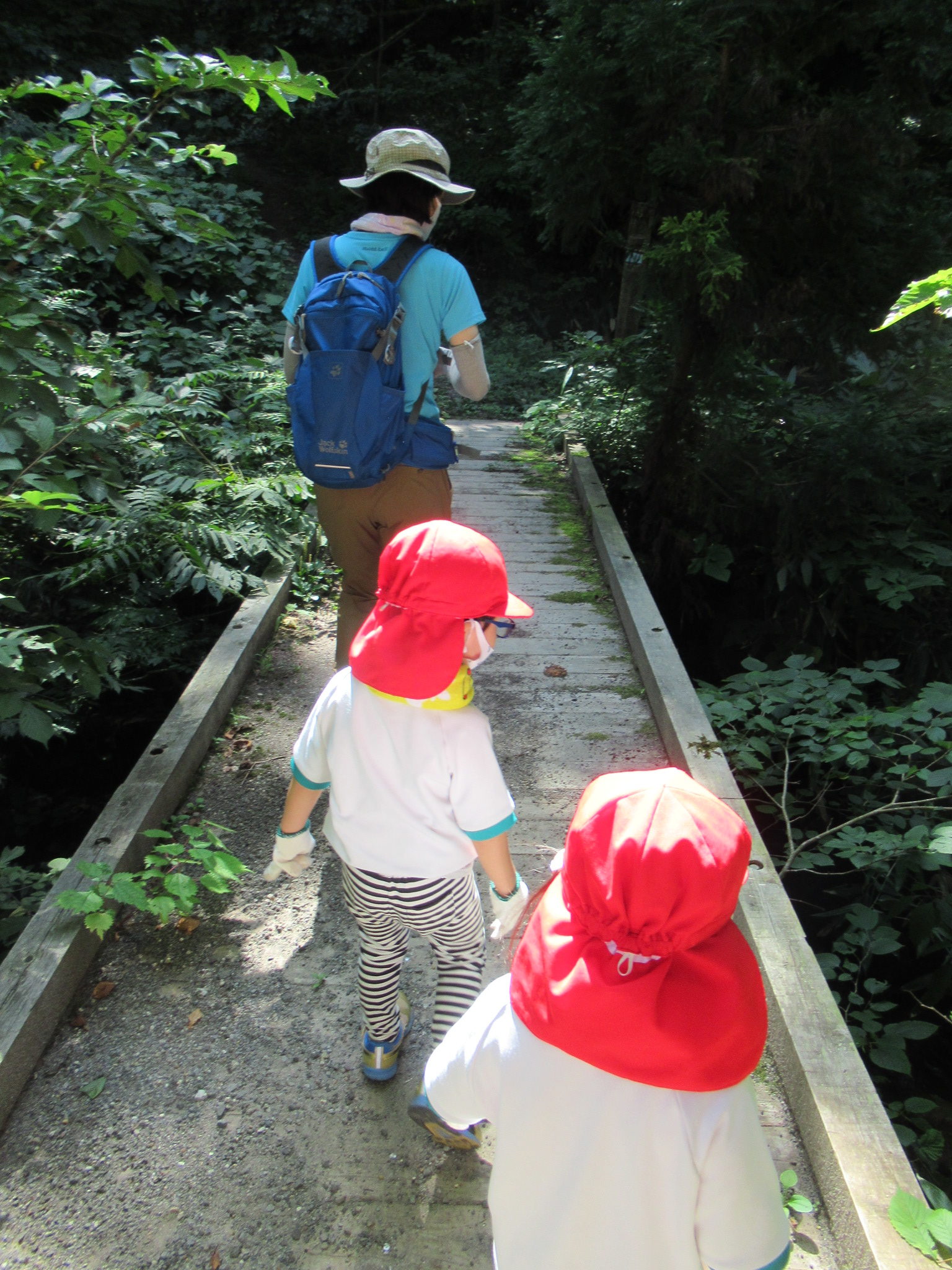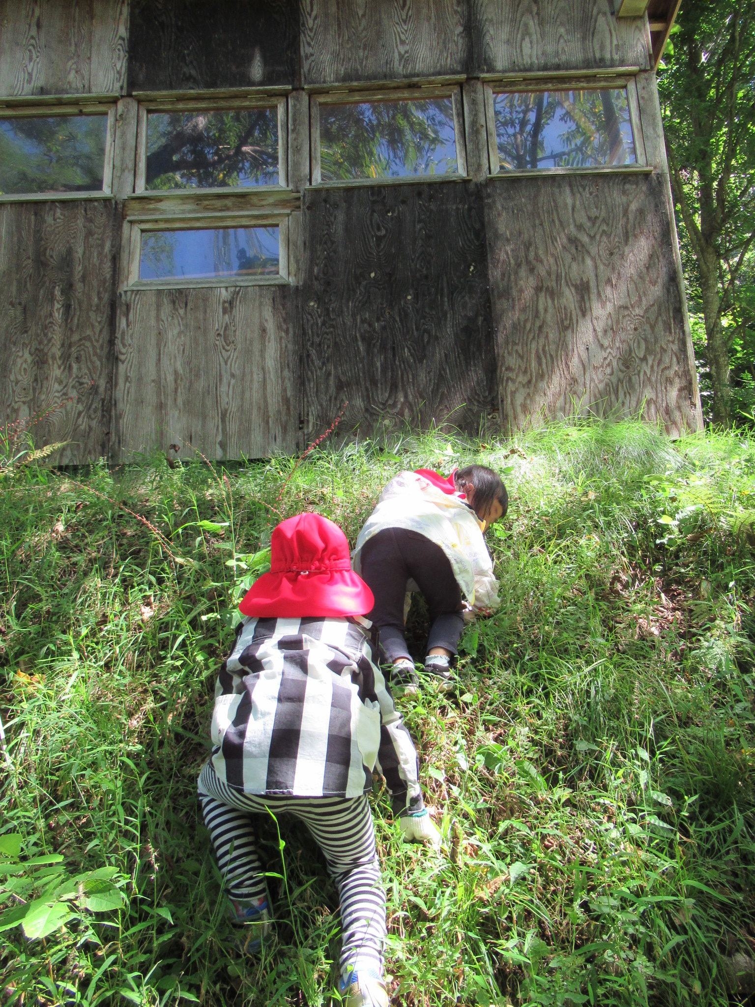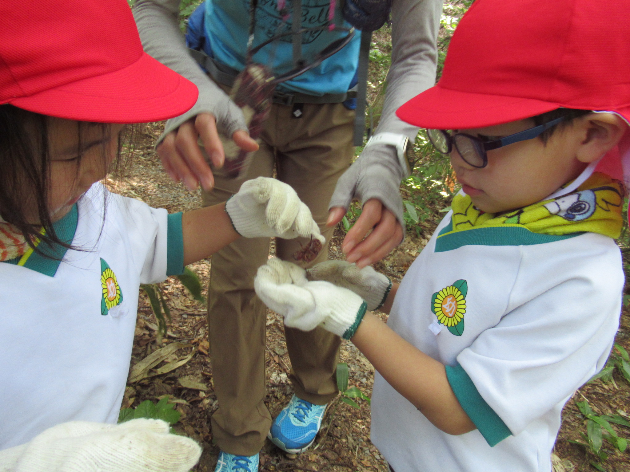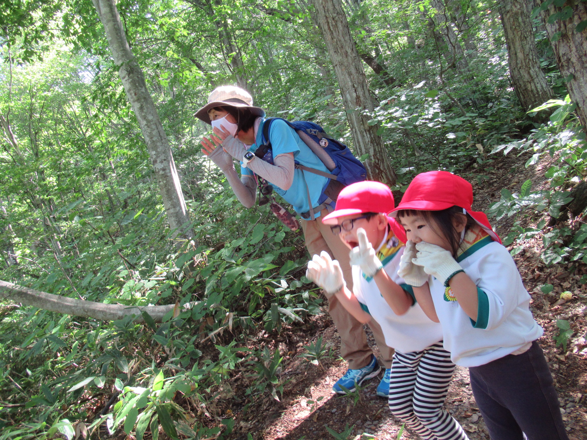 本物のお山をまじかで見て、初めは森の茂みや草むらを「こわいねー。」と言っていました。
