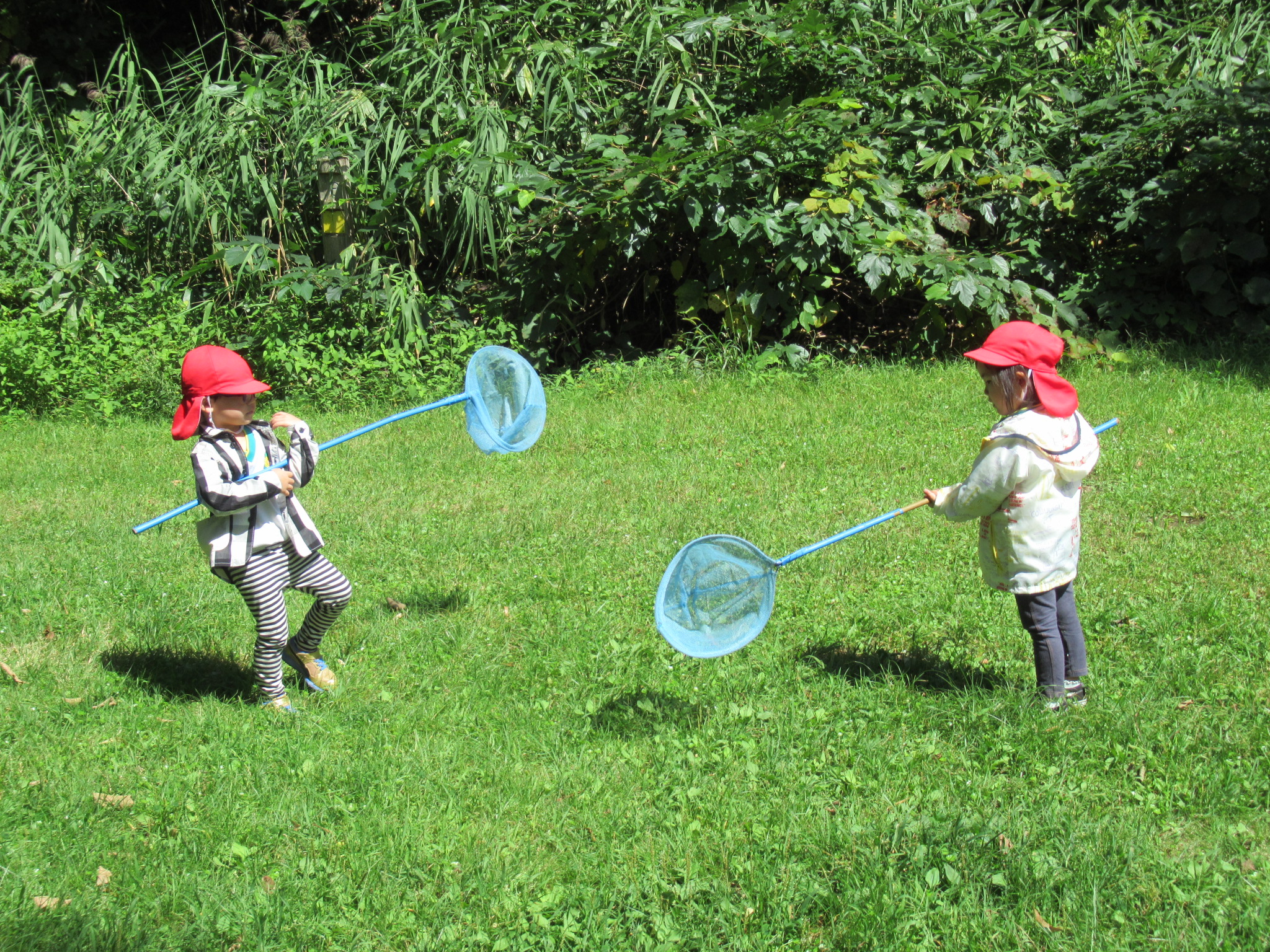虫取りをしたりカエルを捕まえたりしているうちに帰りたくないとまで言い出しました!(オニヤンマ、あきあかね、蝶、蛙等がいました。)