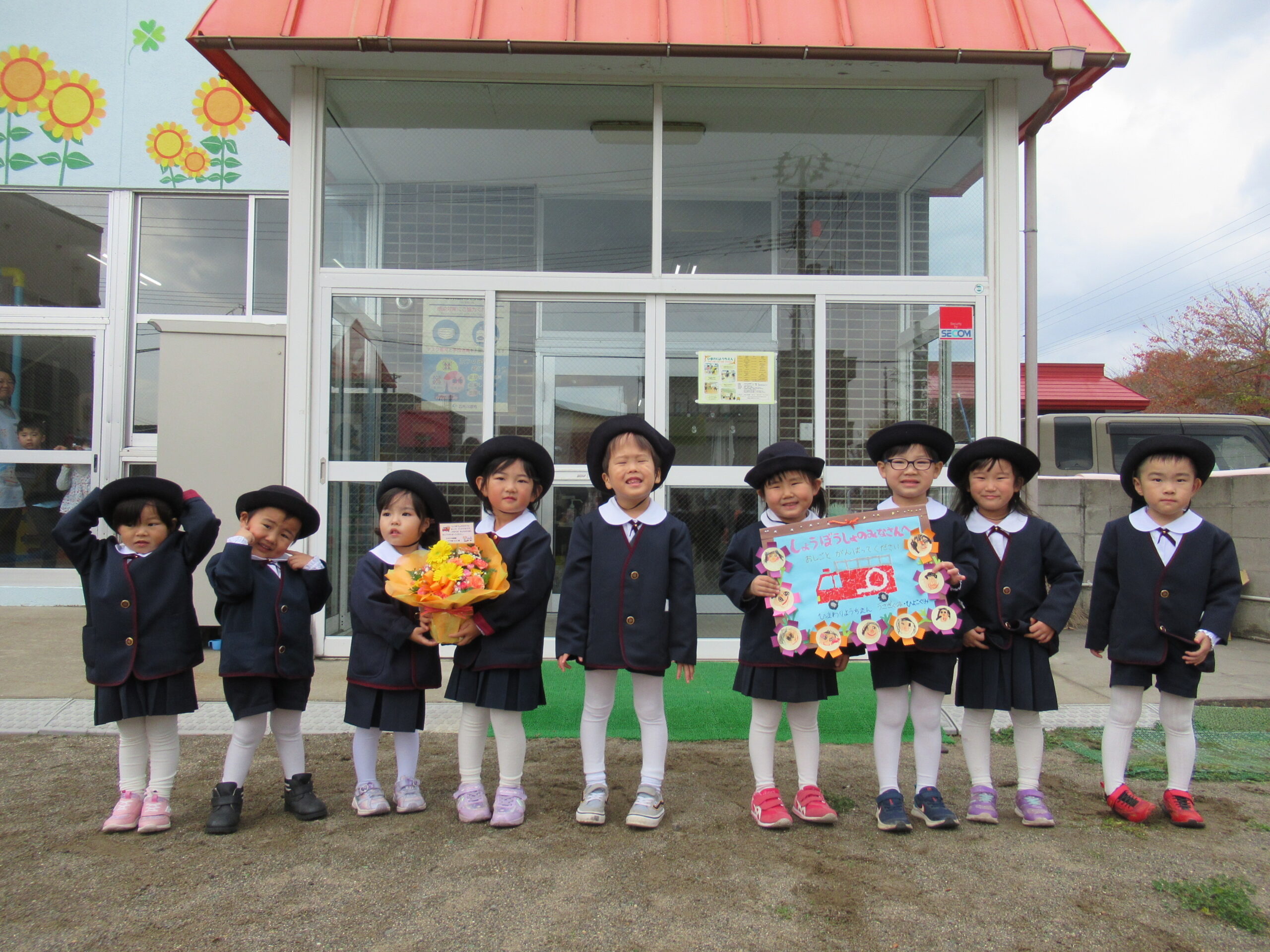 消防署に行く前に幼稚園の玄関前で写真撮影をしました。