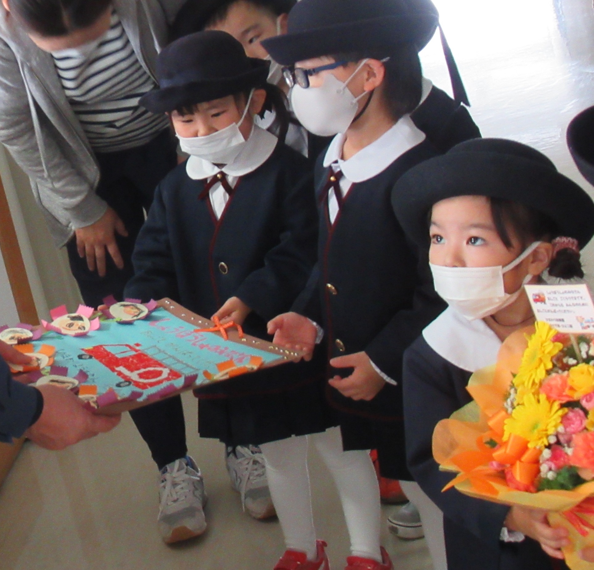 感謝の言葉を言ったり、うさぎ組・ひよこ組のみんなで作ったカードやお花をプレゼントしました。