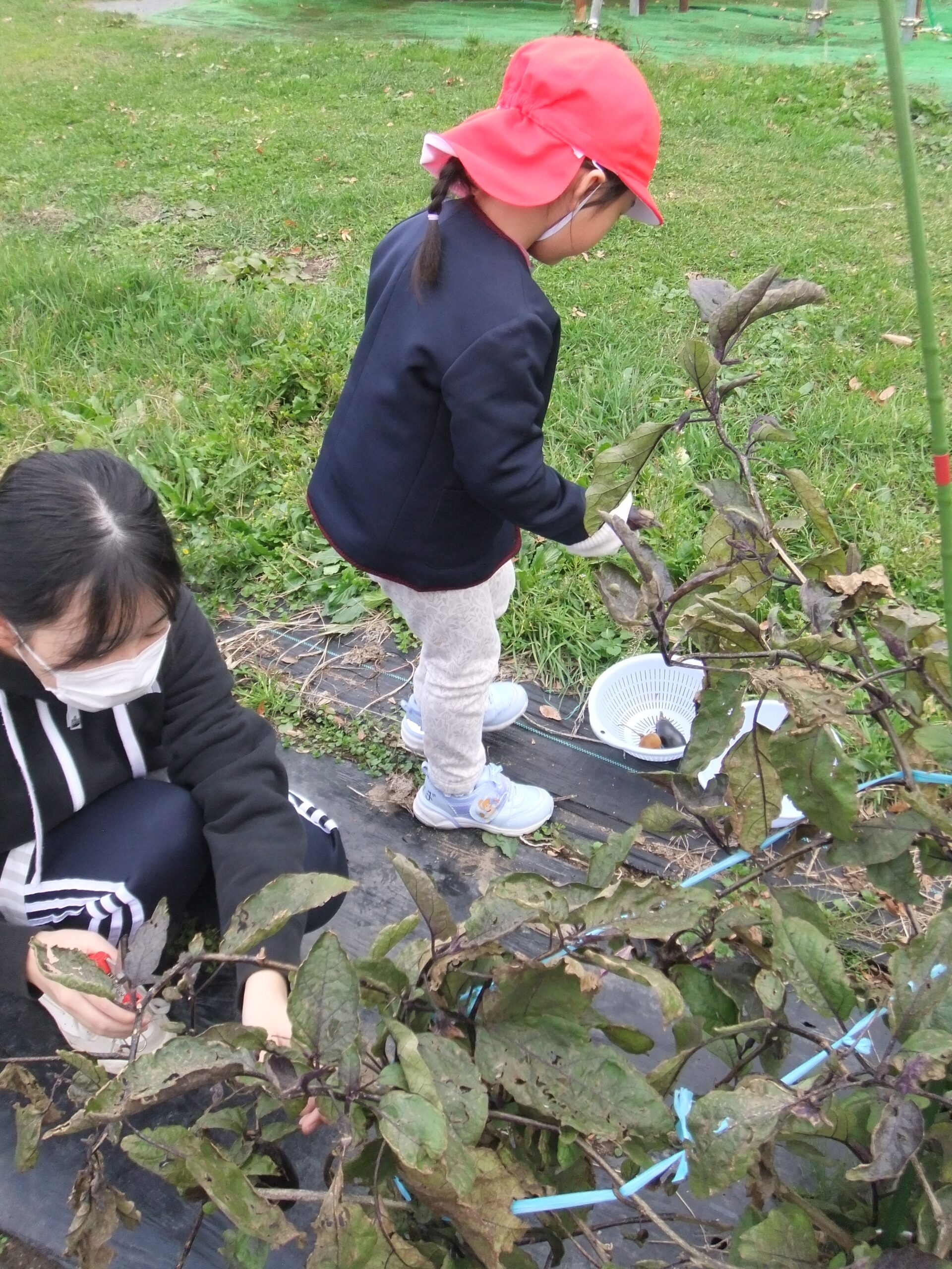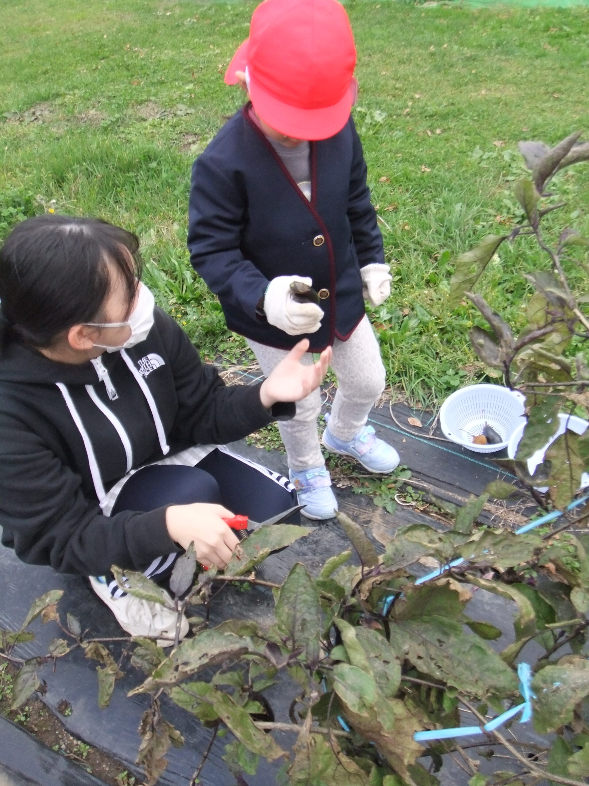 先日、最後の収穫に、うさぎ組さんだけで行ってきました。10月から茄子だけになっていました。