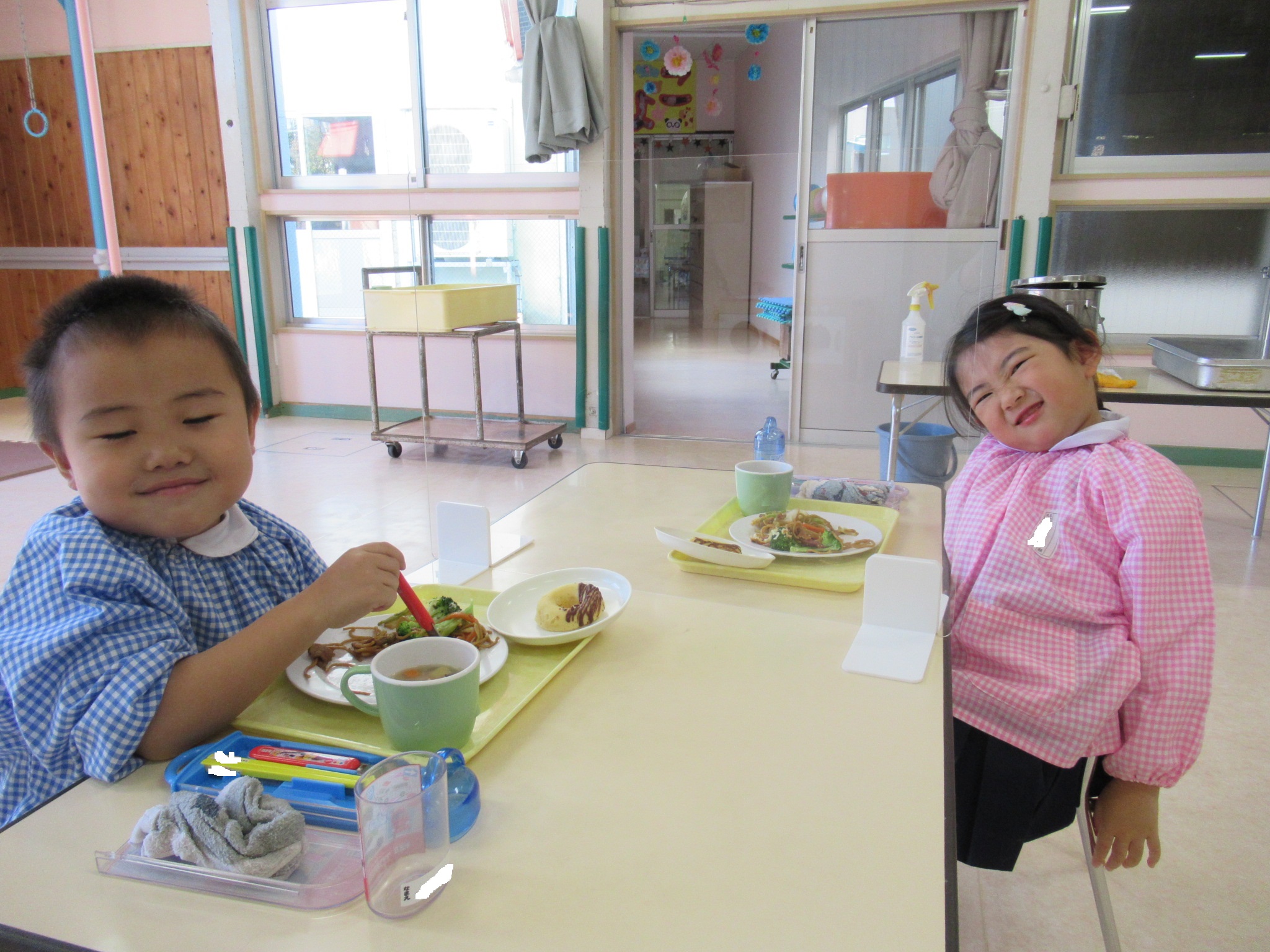 給食は、「焼きそば、けのしる、ブロッコリーのチーズ焼き、豆腐のチョコレートドーナツ」をみんなで頂きました。