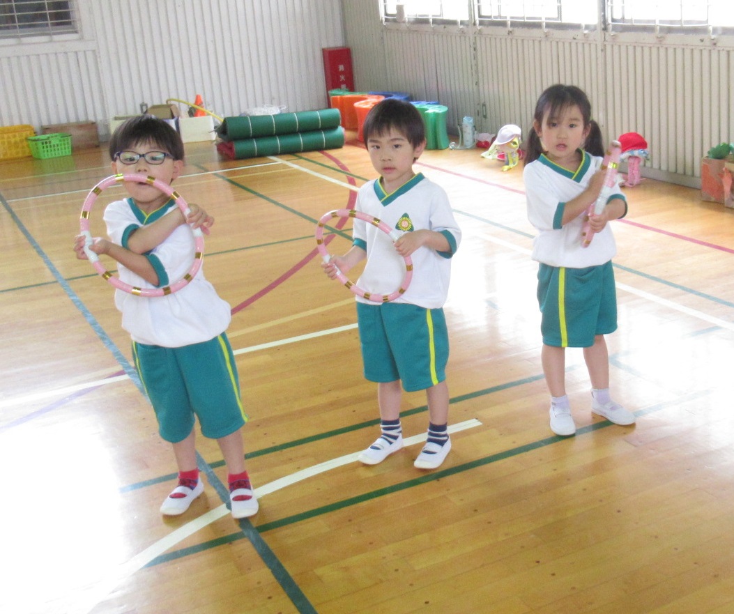 ハンドルに見立てた輪が今回のお遊戯のアイテムです。