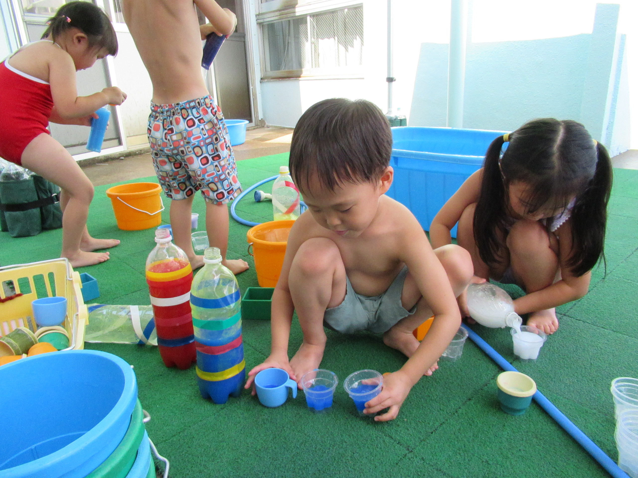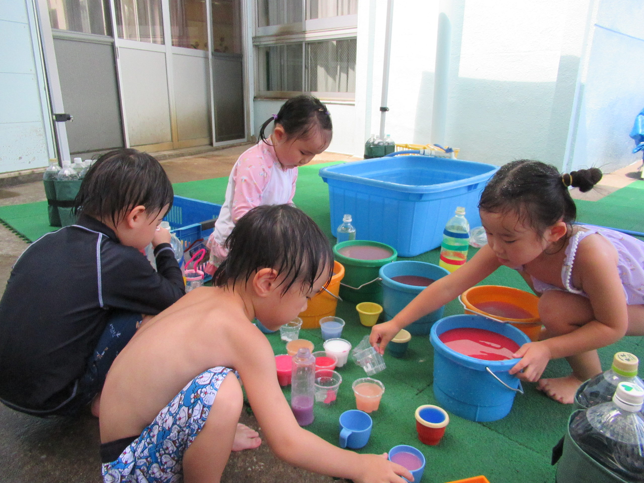 早速色水を混ぜあわせ、「どんな色になるかな?」と話しながら