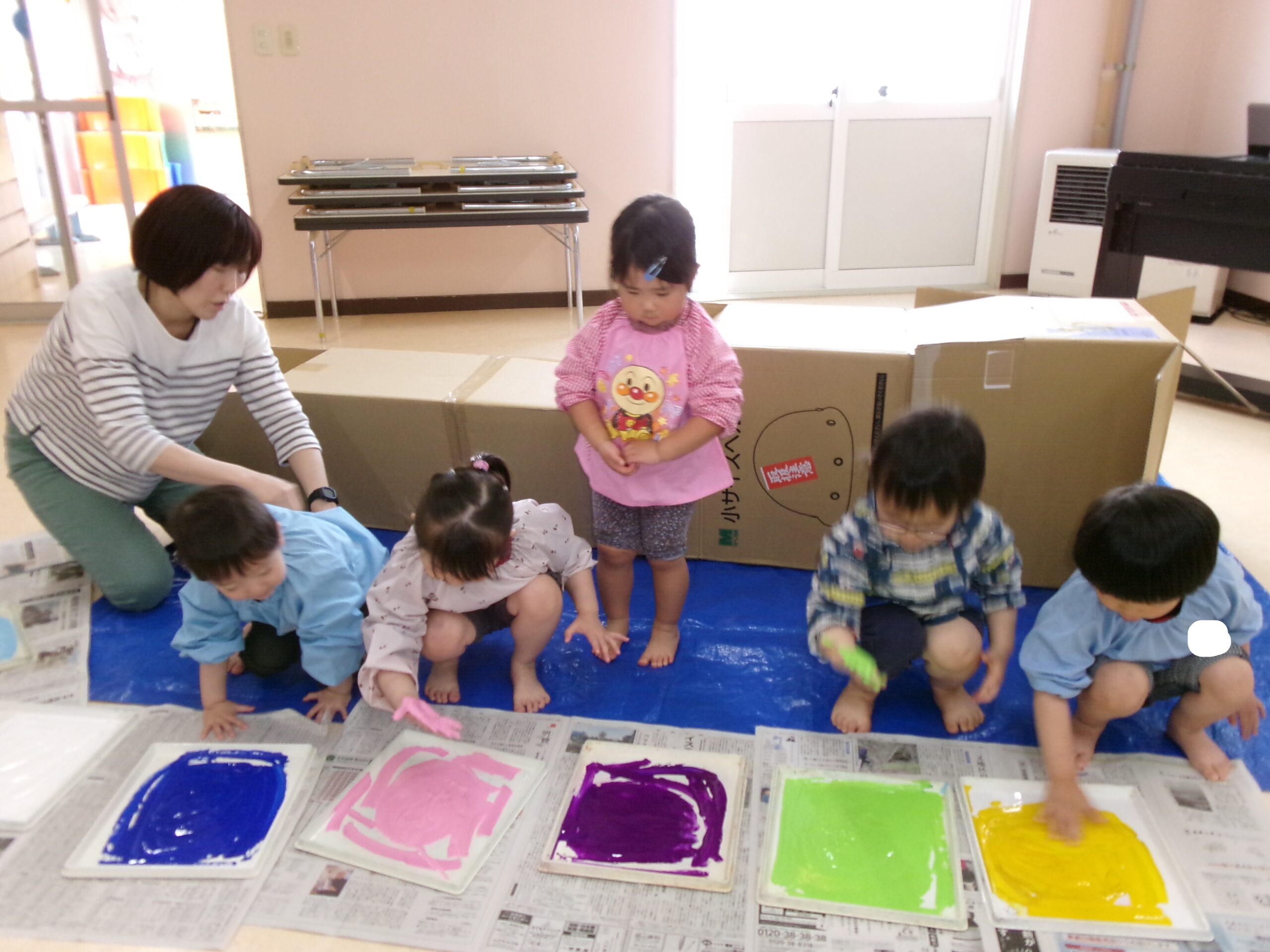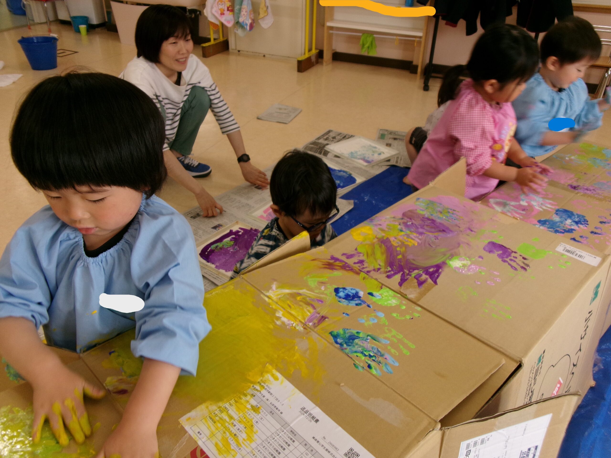 絵の具を手のひらいっぱいに広げて、塗りたくりました!