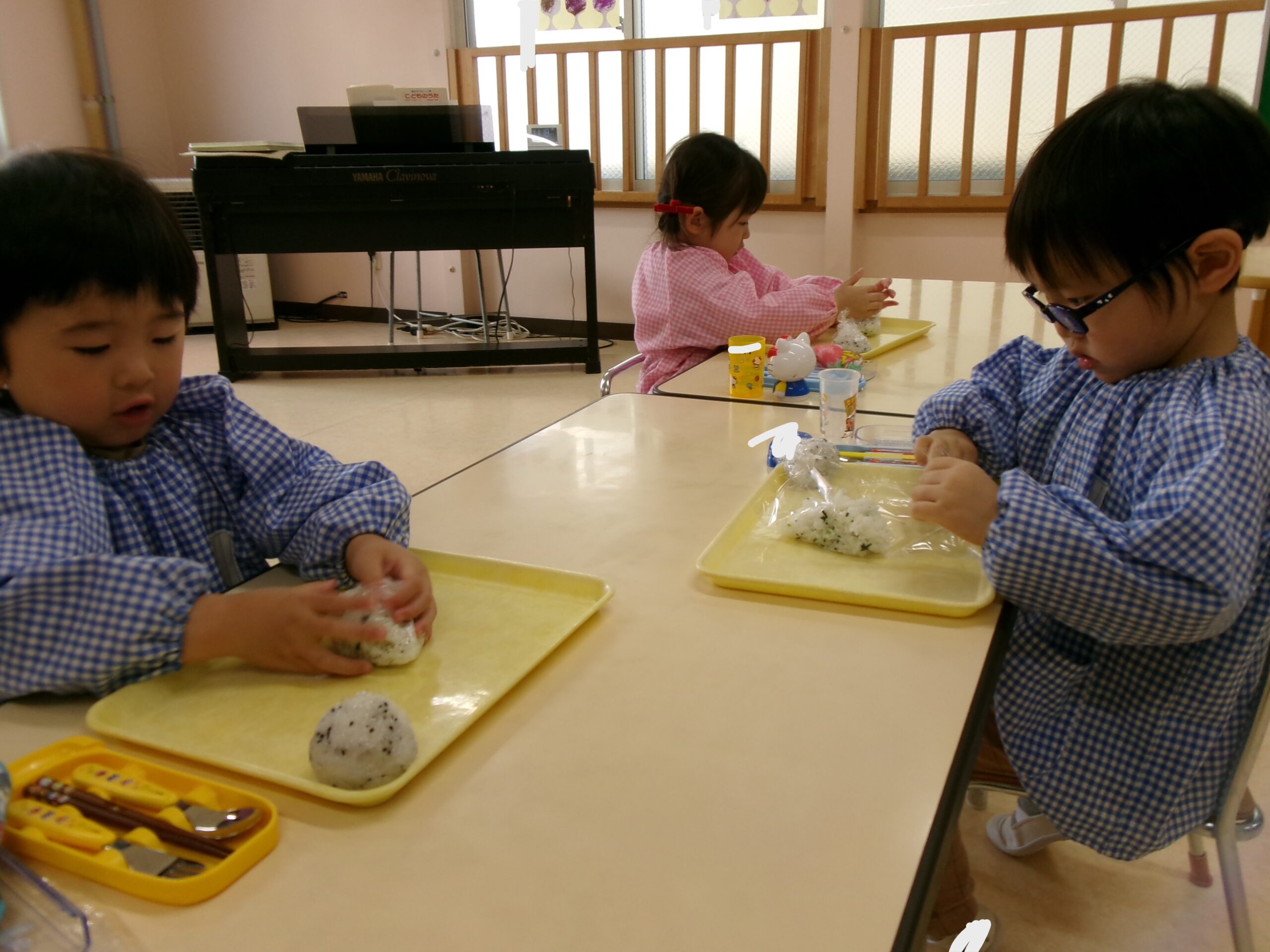自分で作ったおにぎりに「おいし~♡」と満足げな子ども達でした🍙