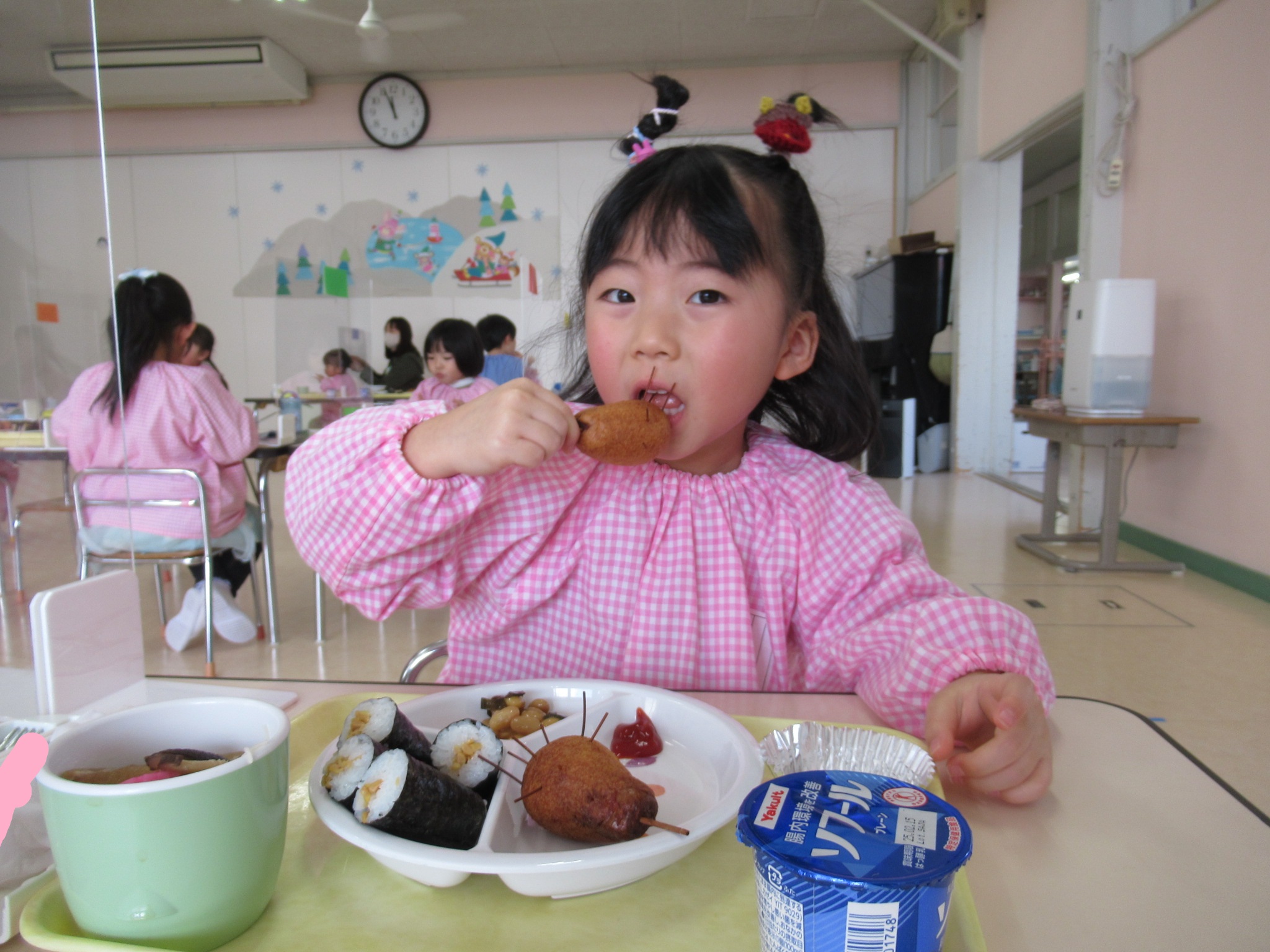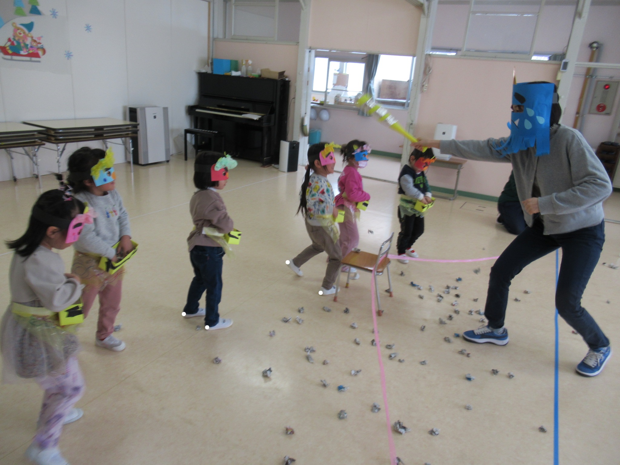 今年は先生が鬼をやるということで怖がる子はいなく「鬼は外!福は内!」と投げていました。