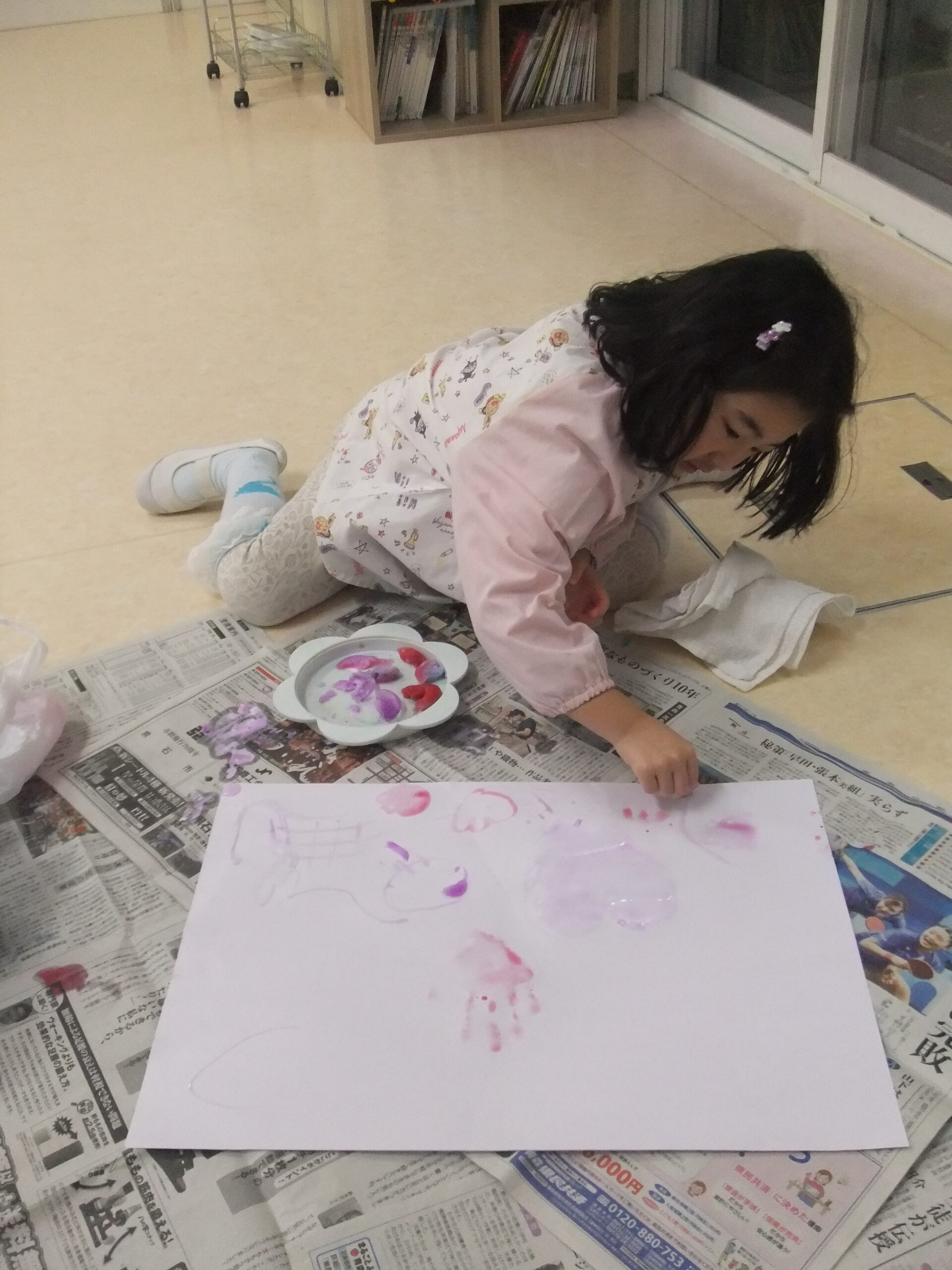 今日までのがんばりが、解放されたように両手を絵の具だらけにしながらお絵描きを思いっきり楽しんでいました(⋈◍>◡<◍)。✧♡