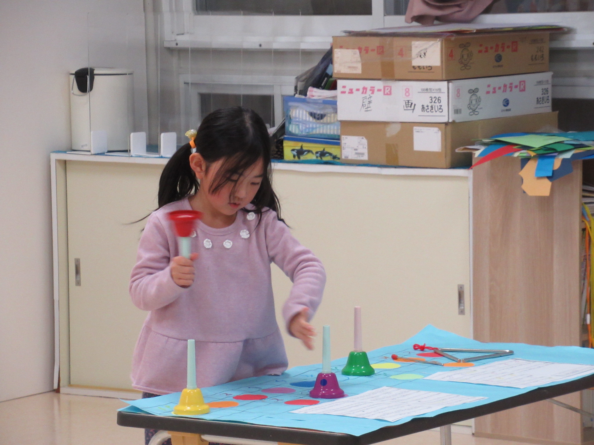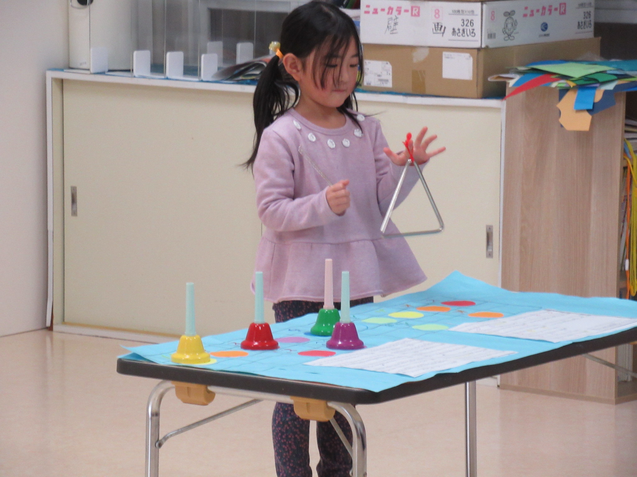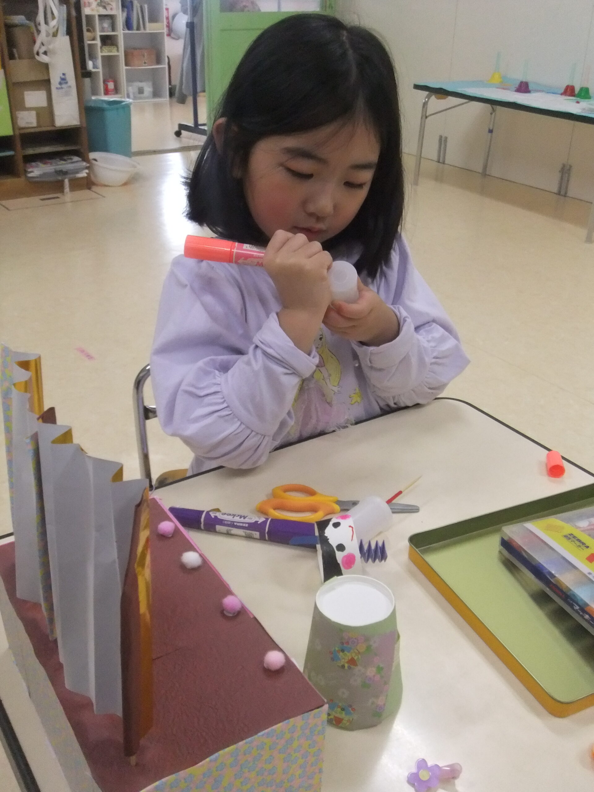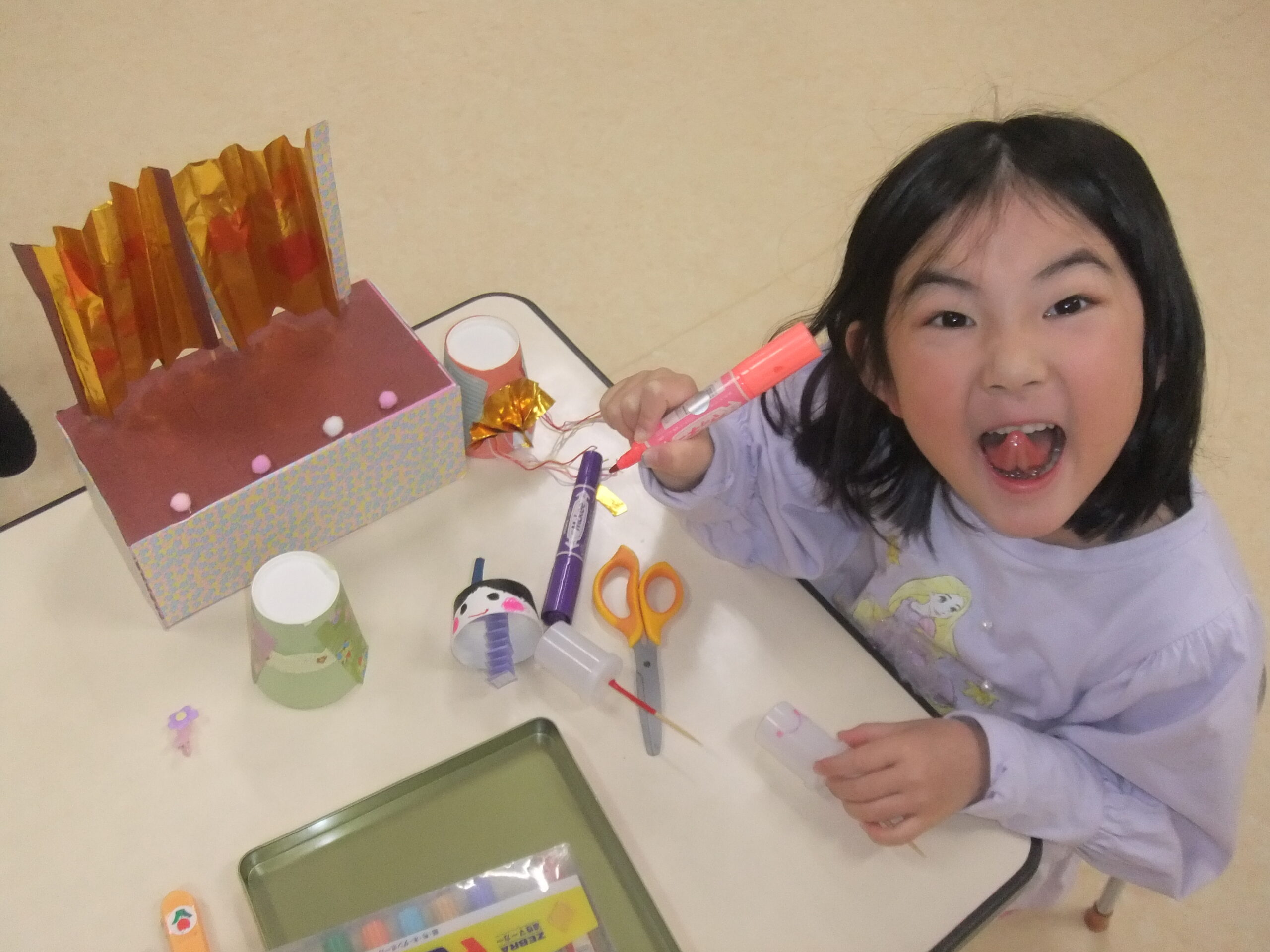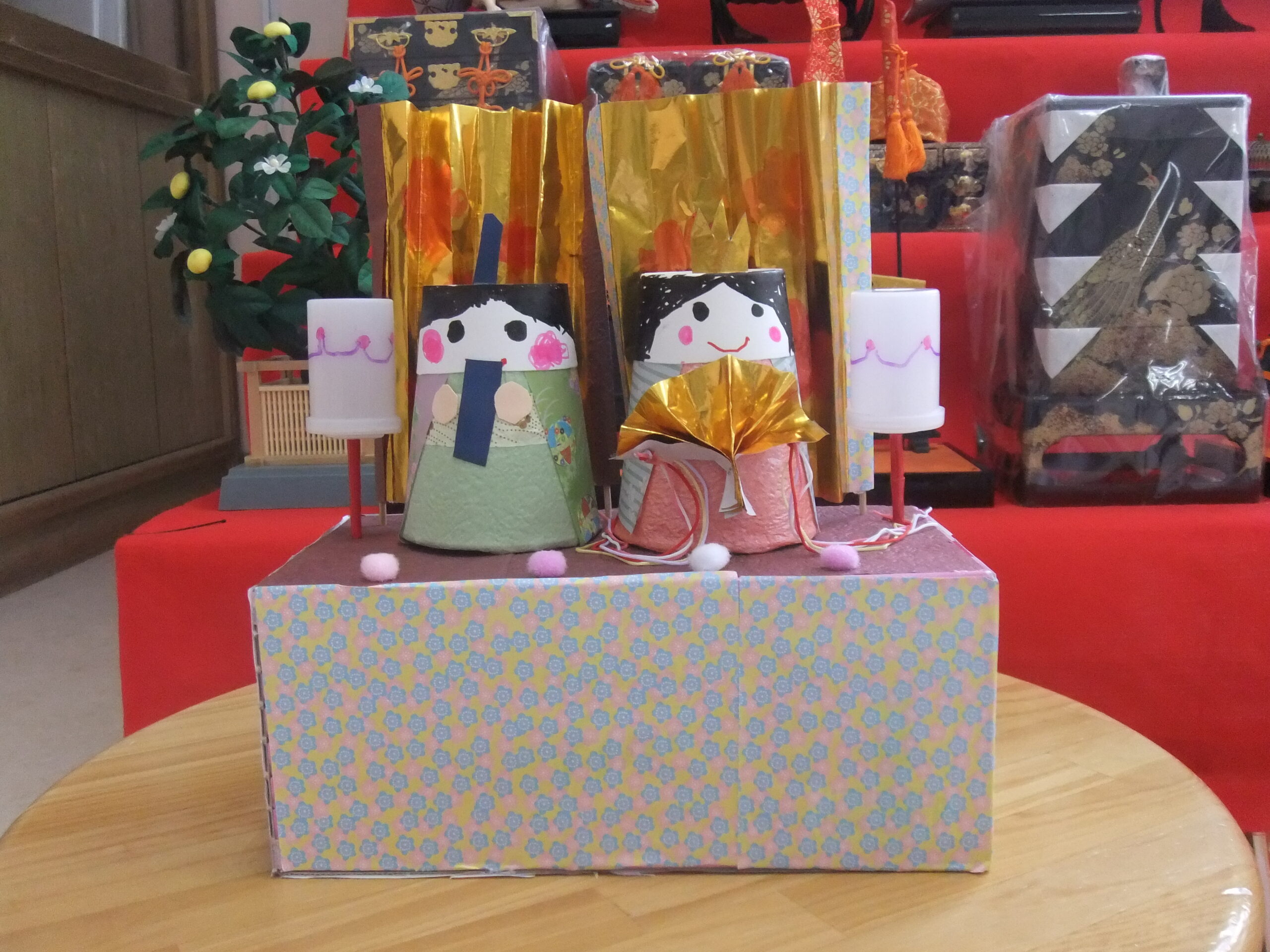 🐰クラス参観、お別れ会の司会練習、お雛様飾り製作🐰 早いもので2月も終わりです。 2月上旬クラス参観がありました。 この日に向けて練習を重ねていた、 縄跳びと ハンドベルとトライアングルの演奏をミニ発表会で披露をしました。 お別れ会に向けての司会の練習も慣れ始め、暗記できる部分が増えてきました。 年少組さんを前にしても 大きな声で、堂々とお話ができるようになってきました。 そして、 お雛様飾りの製作もしました。 自分で考えた金の屏風の模様描きや 雪洞飾りも、雛飾りらしく素敵に仕上がりましたよ。