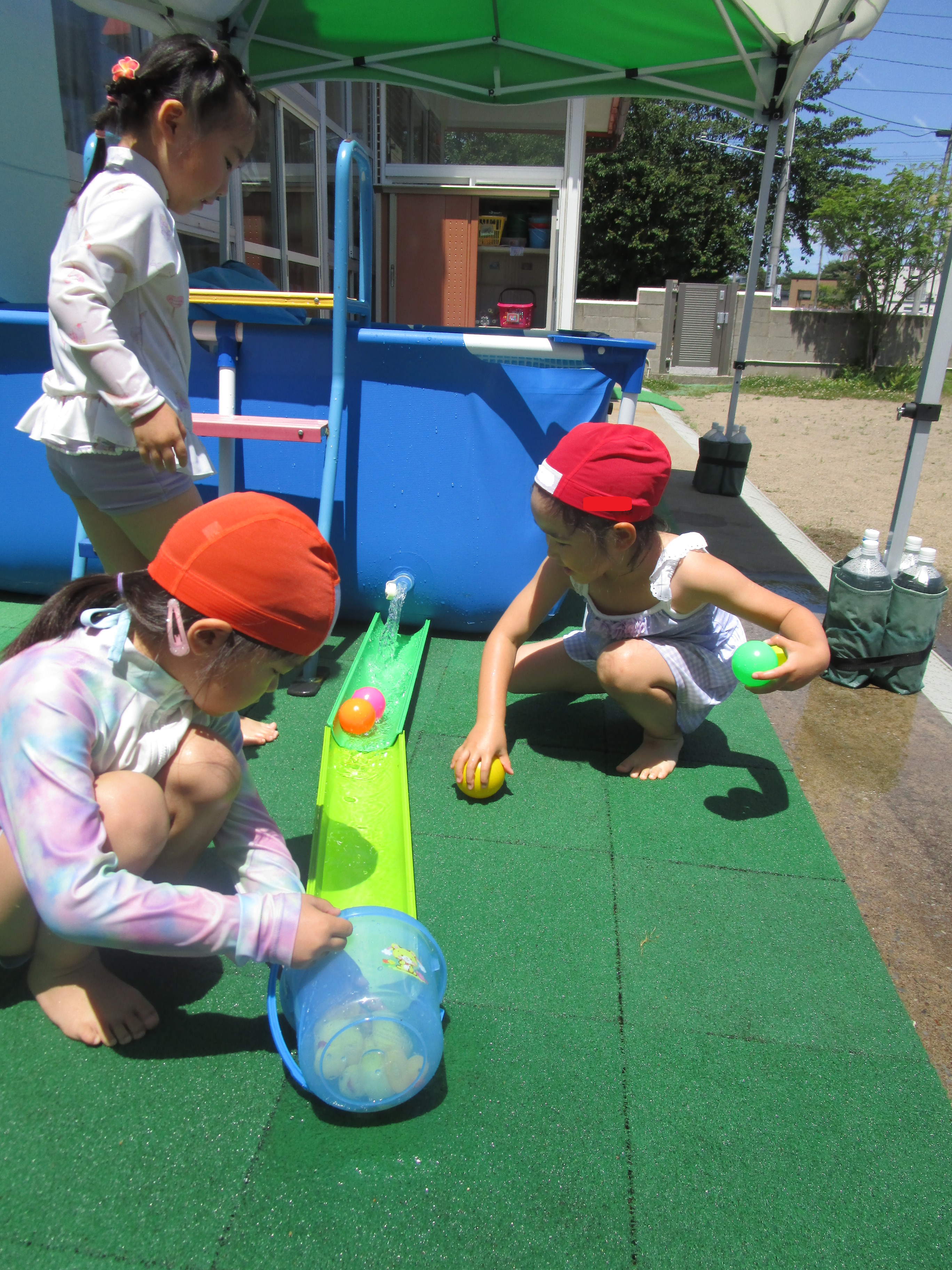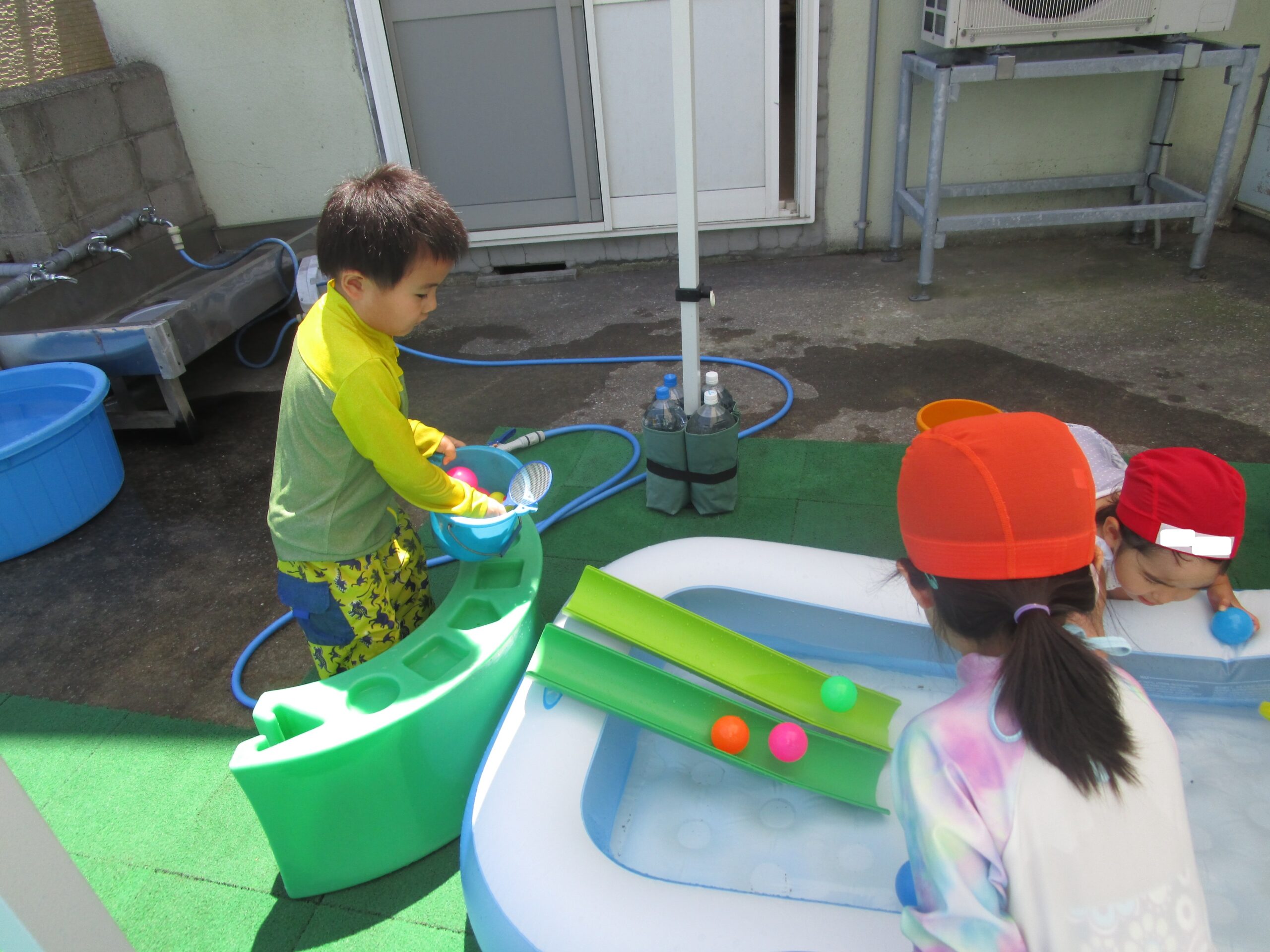水の流れを活かしてボールなど流して楽しんでいます。