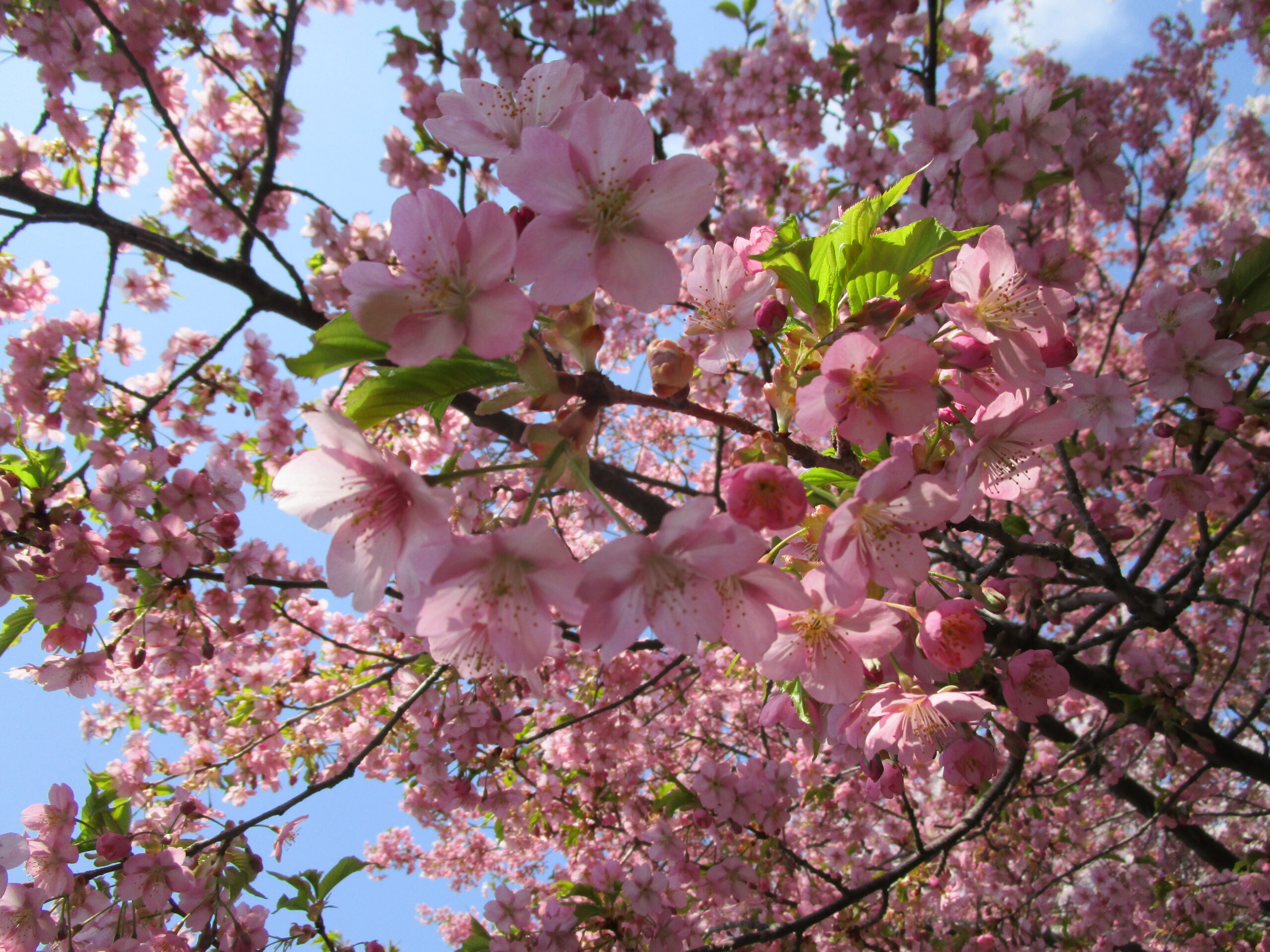 フラワーセンター内には濃いピンクや薄いピンクの梅の花が咲いていました。