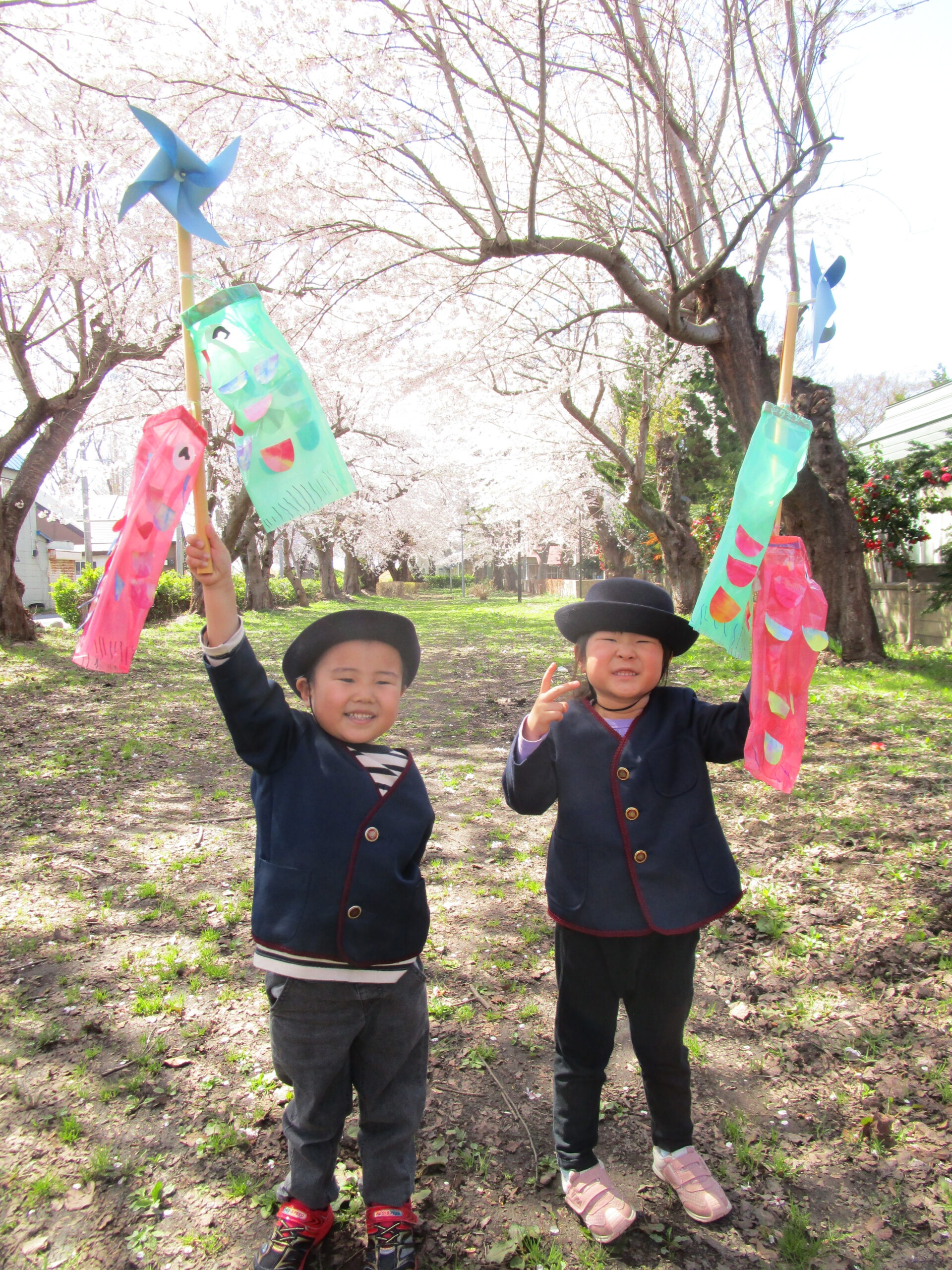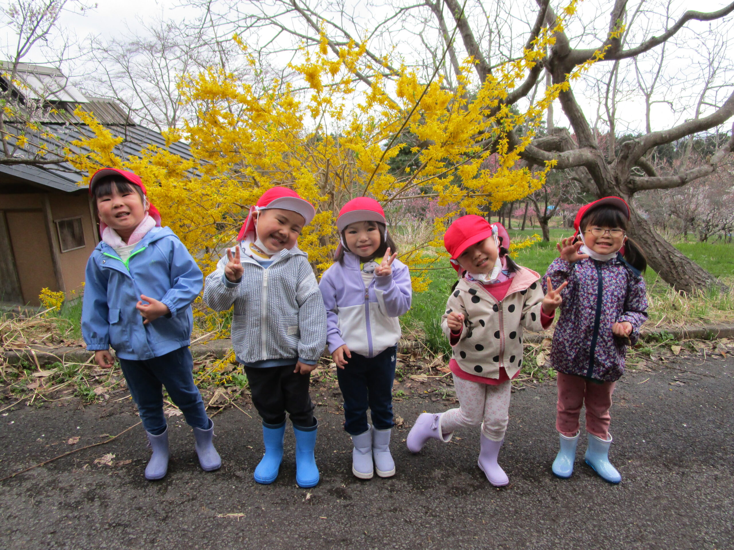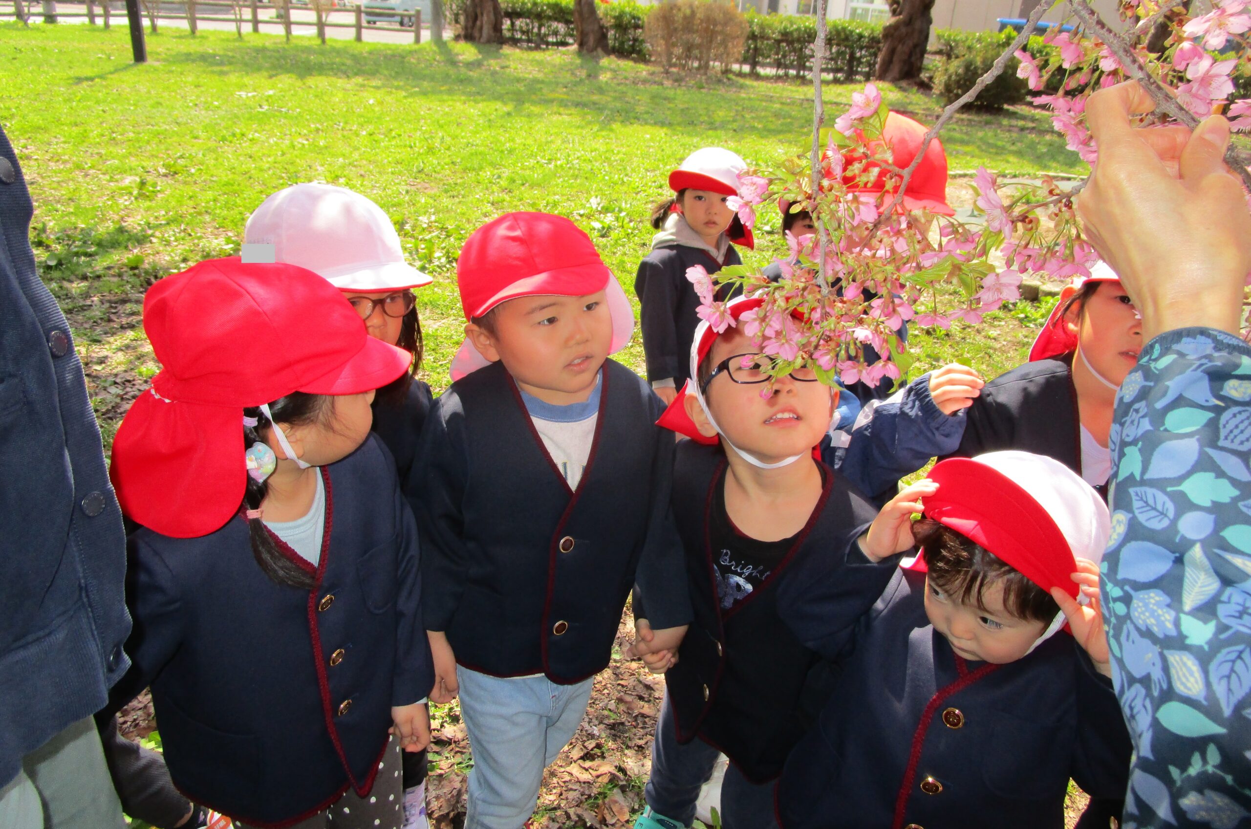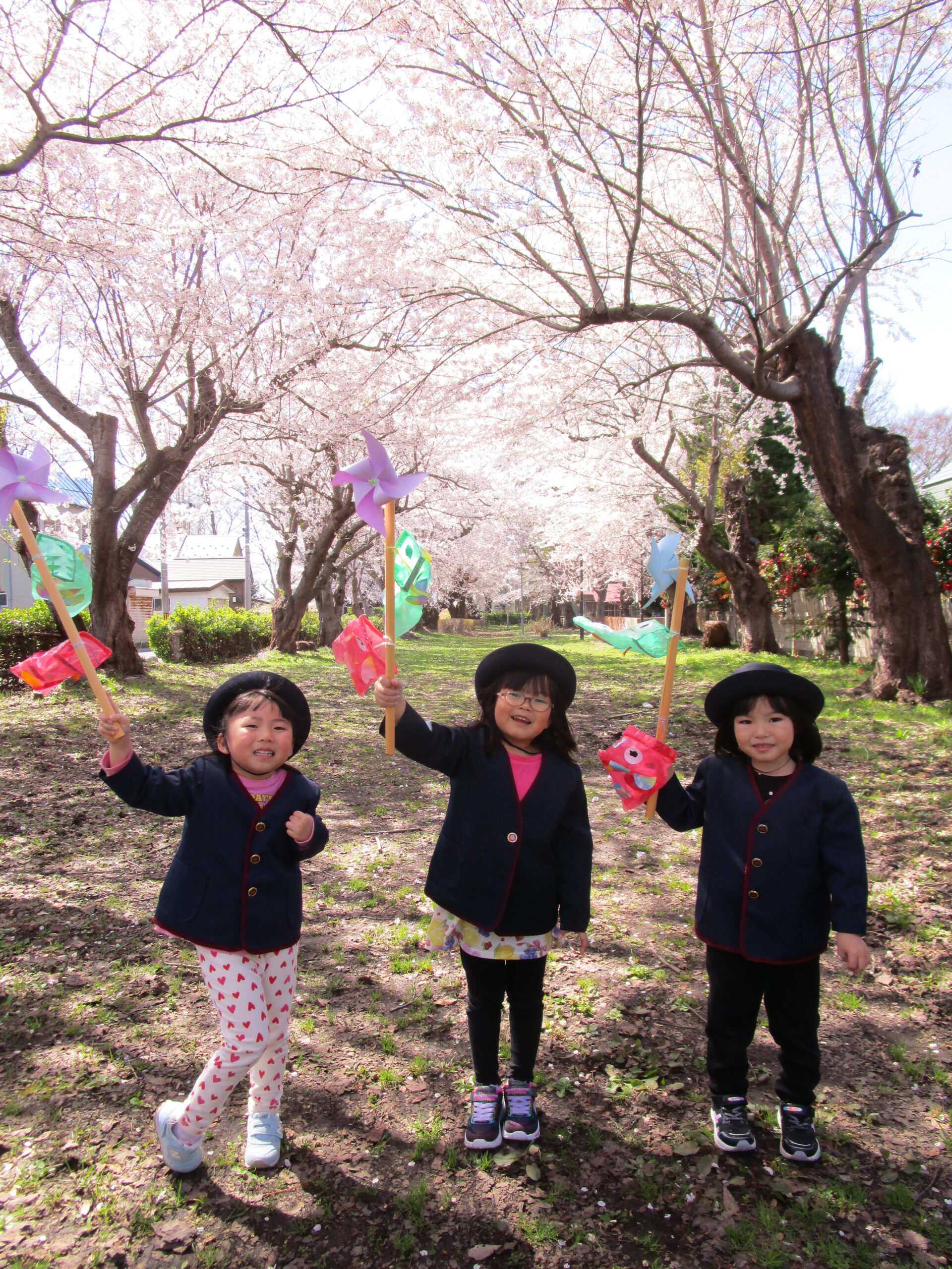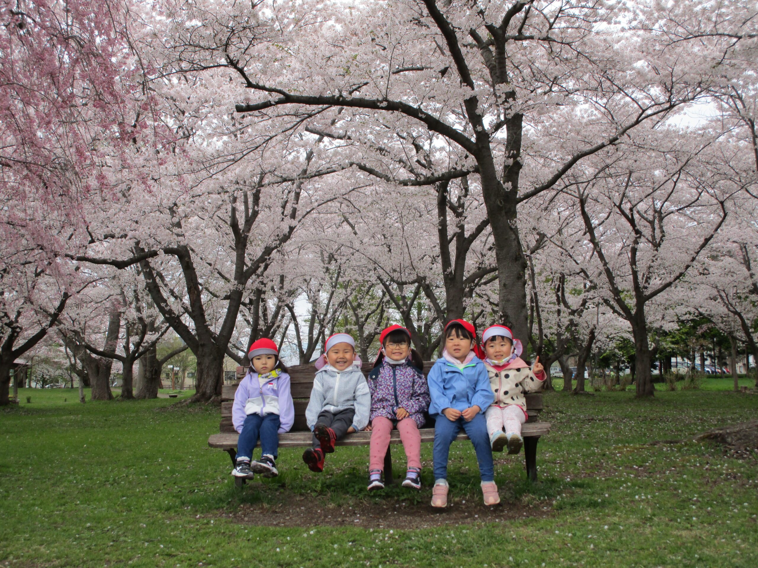 幼稚園の前の柳町児童公園の桜が満開の時みんなでお花見に行きましたよ!