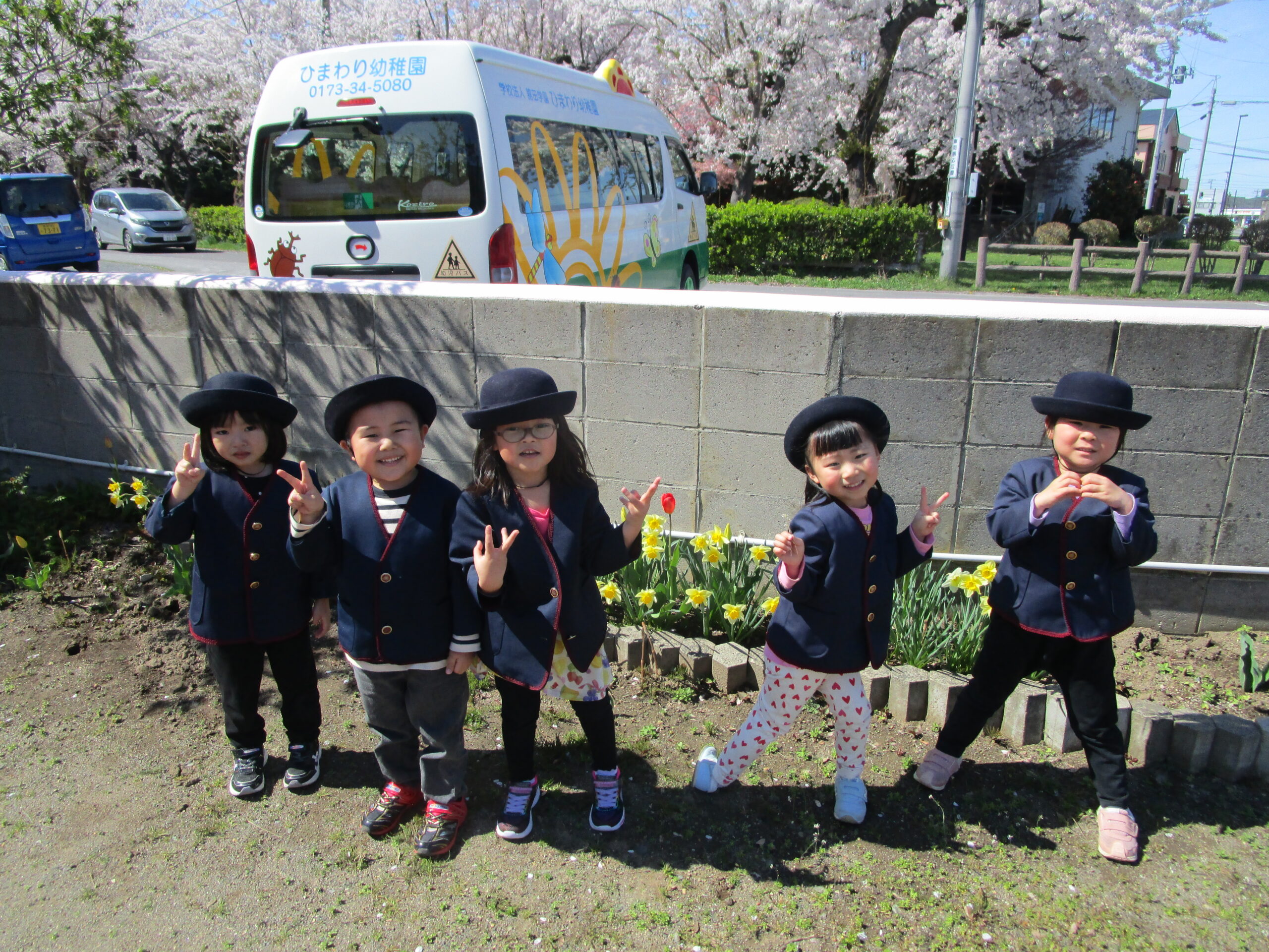 朝、園バスの中で安全指導を受けた後、津軽フラワーセンターに向けて出発しました。