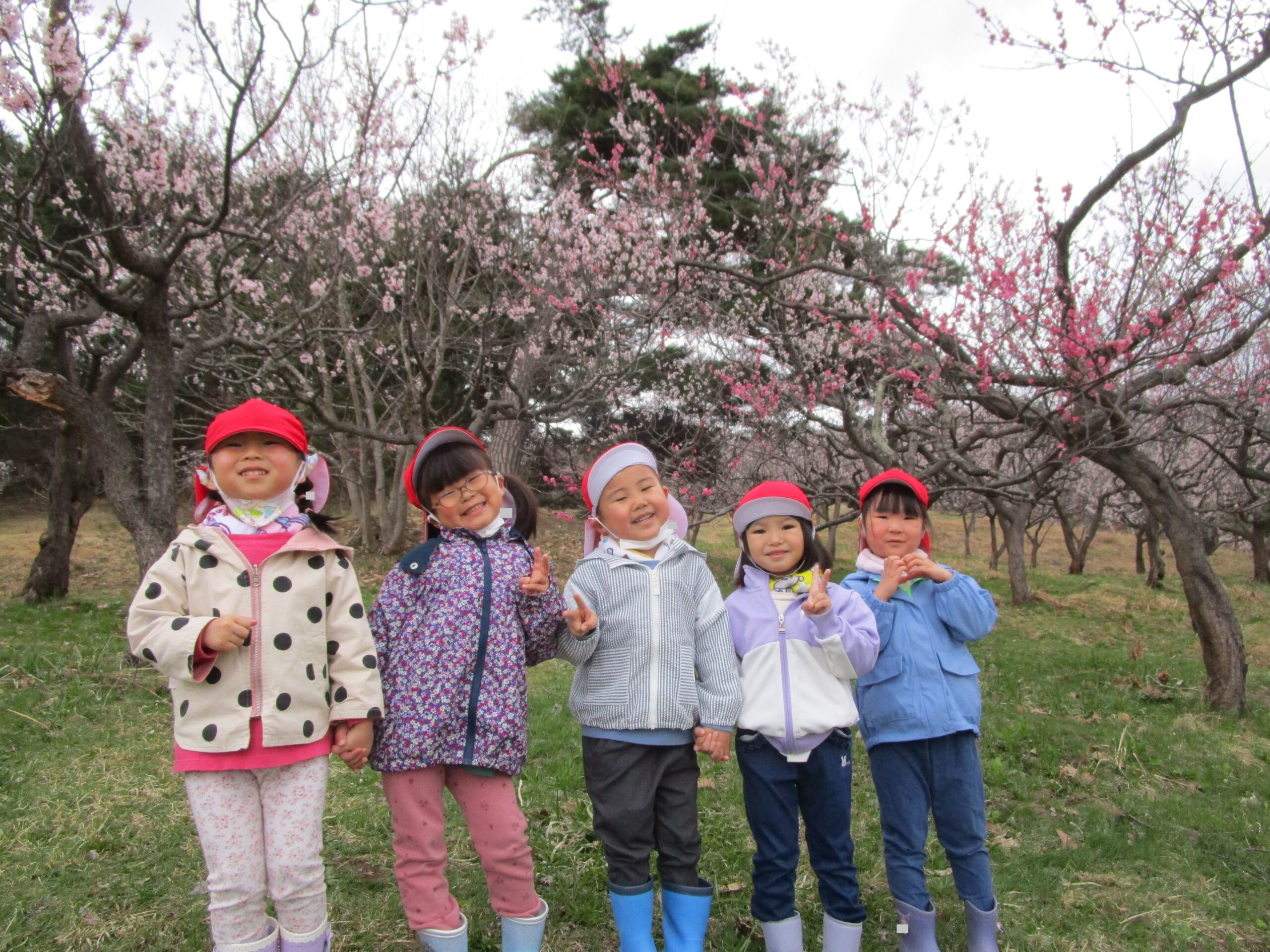 梅の花の甘い香りを嗅いでうっとりした表情の子ども達。