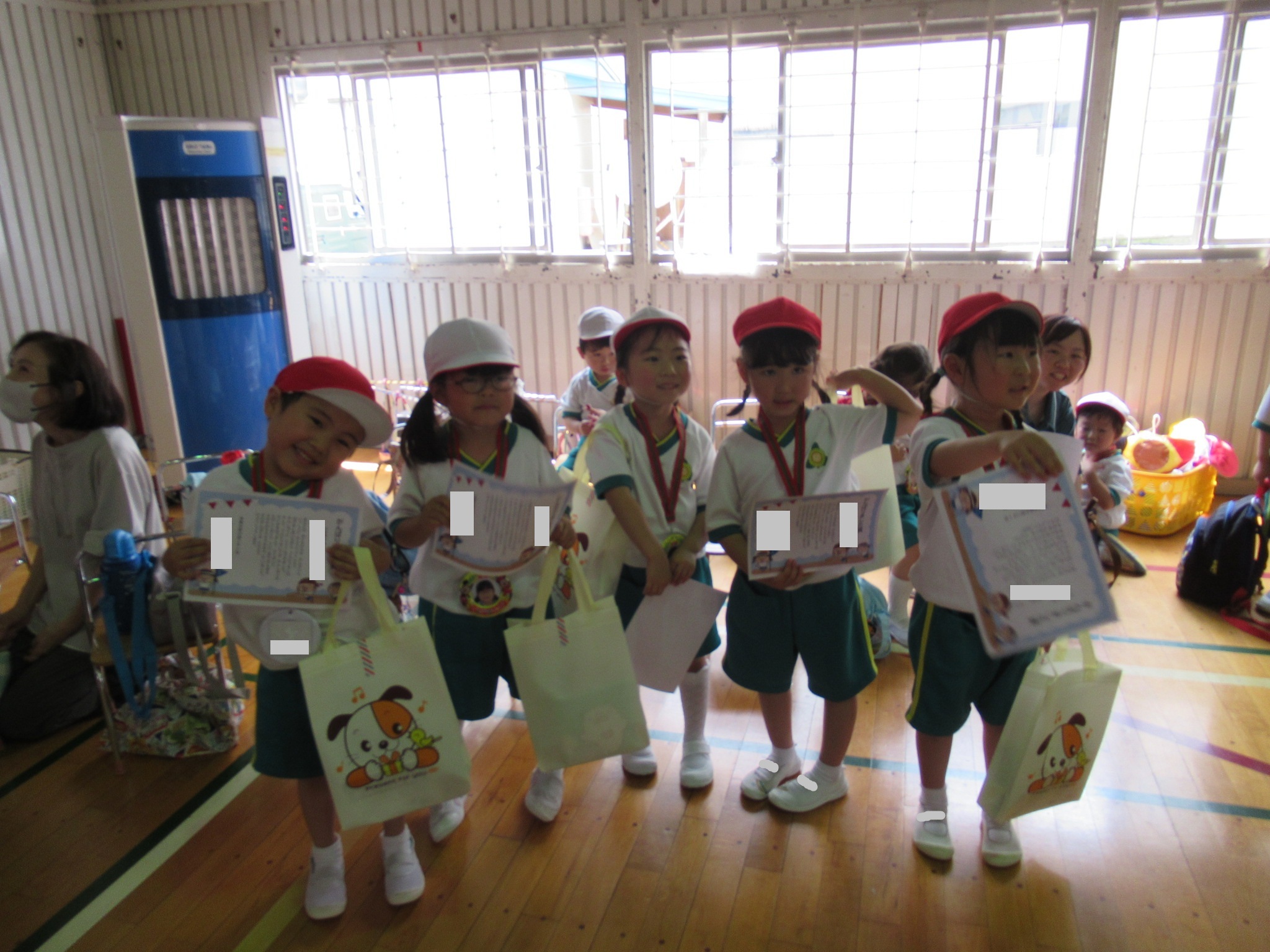 閉会式でもらったメダルや賞状、プレゼントをもらって喜んでいた子ども達。