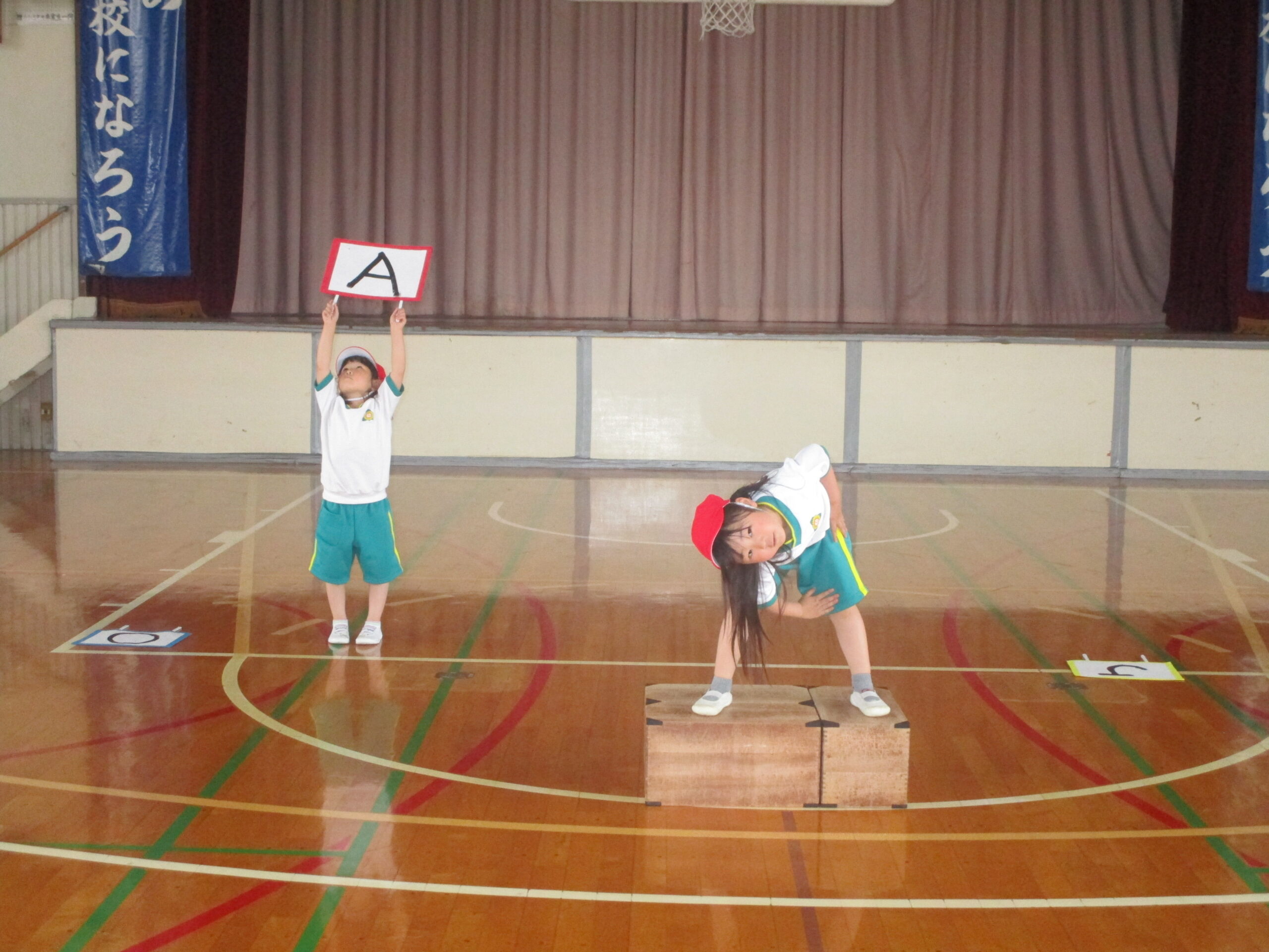 自分たちで考えた人文字。自分で好きなアルファベットを表現しています。