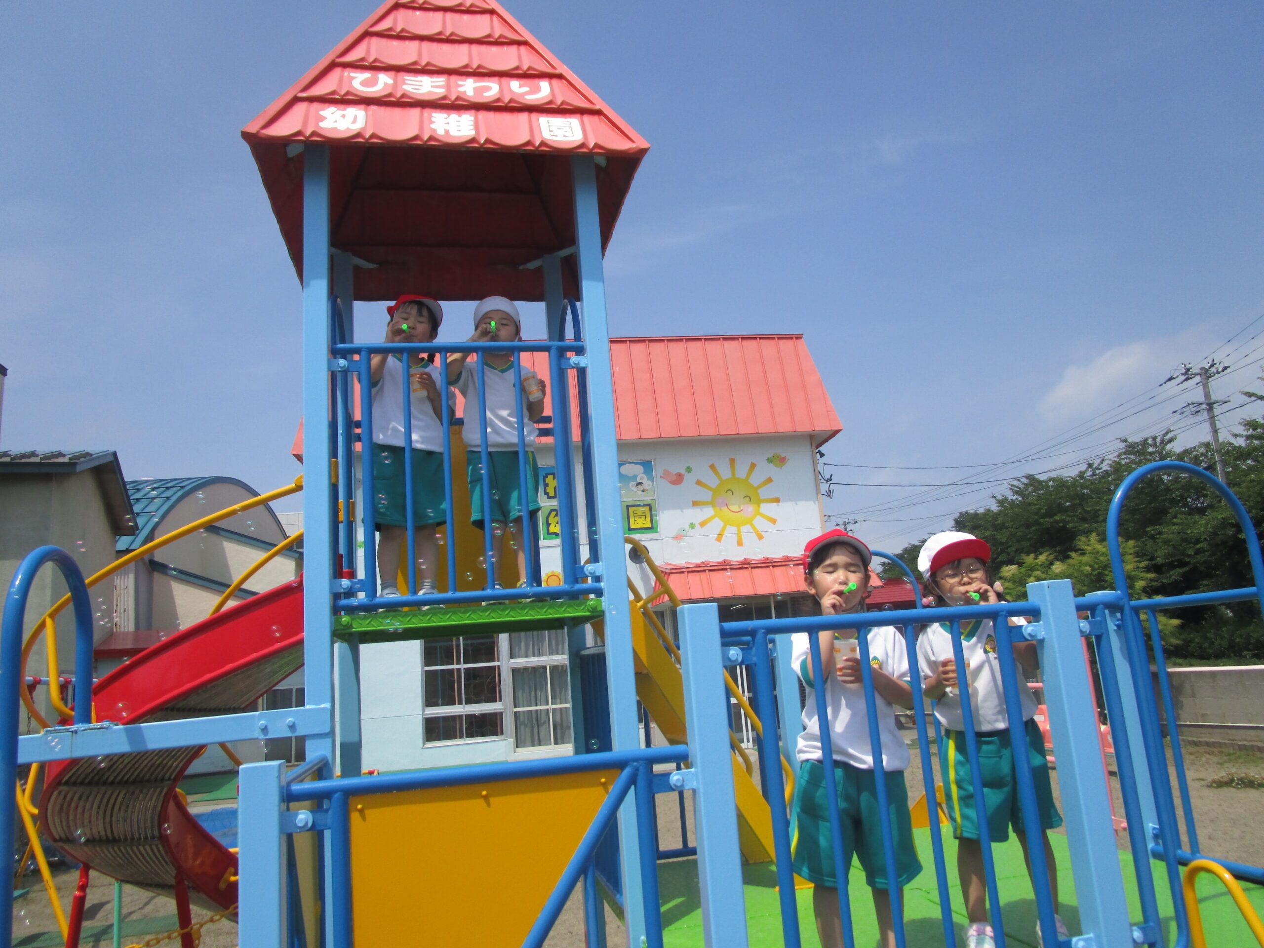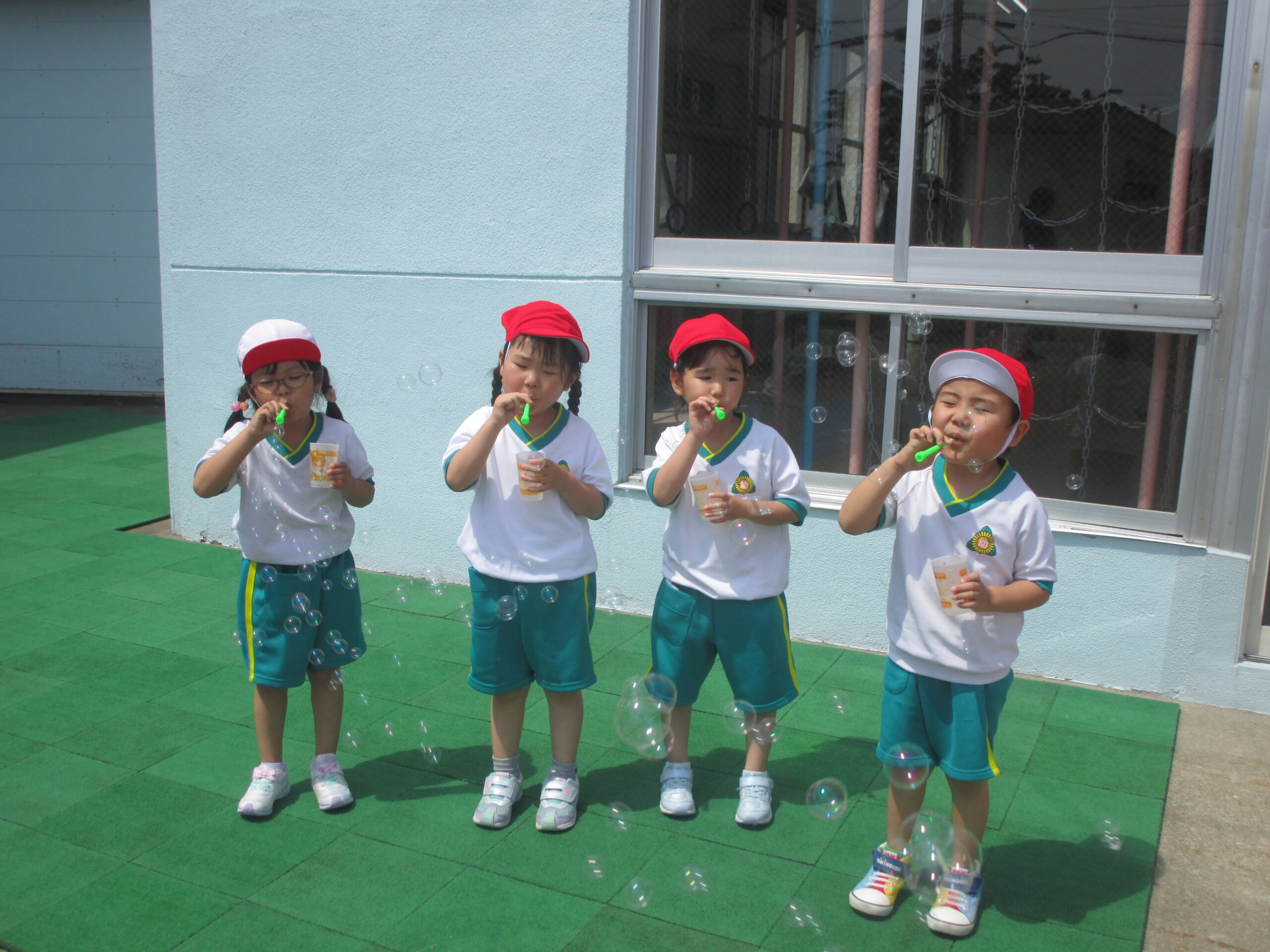 たくさんストローの先から出てくるシャボン玉を見ながら楽しんでいました。