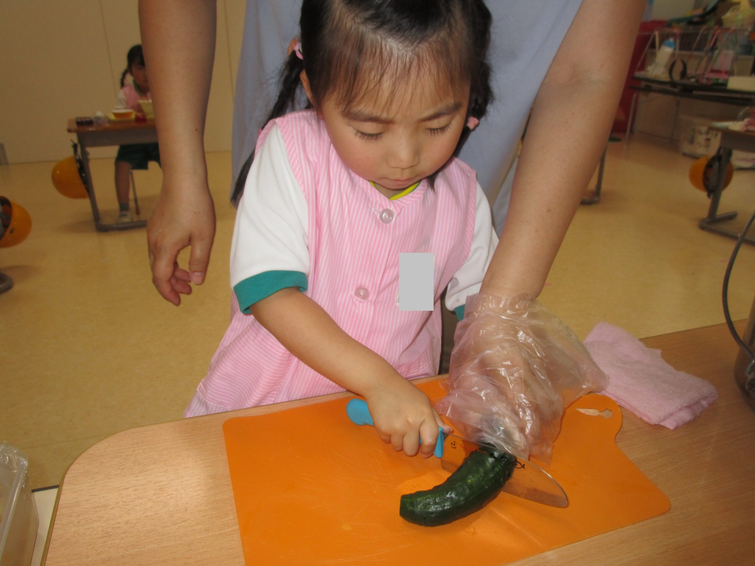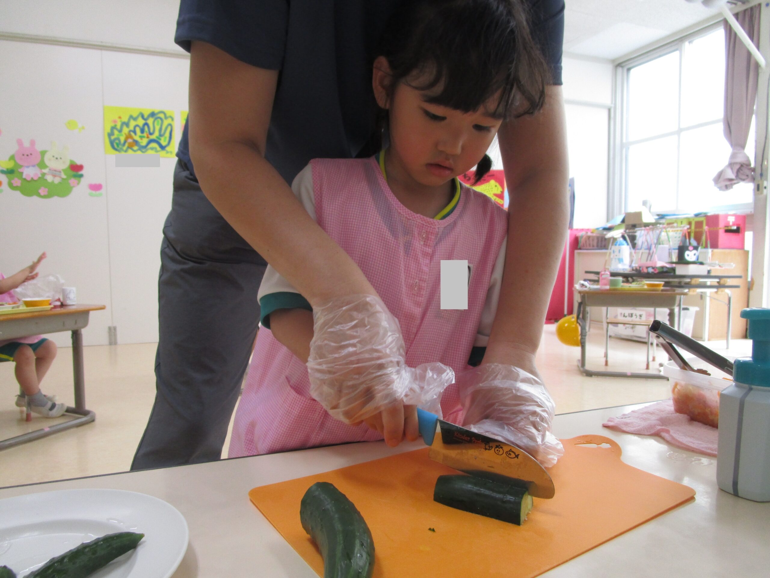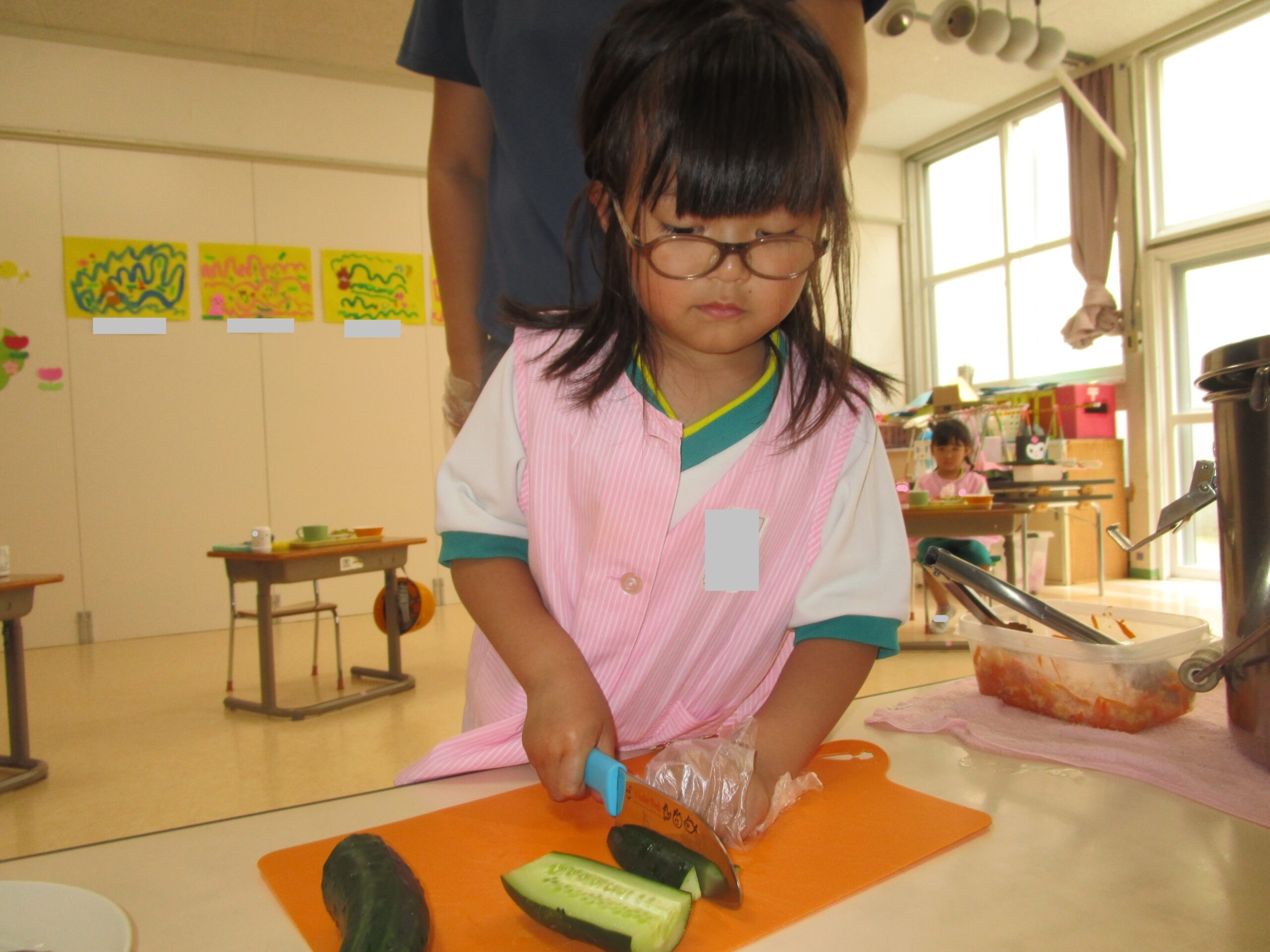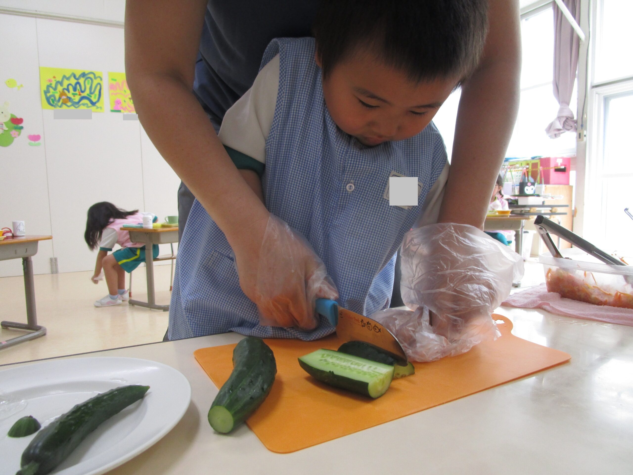 自分たちで包丁でスティック状に切り、味噌とマヨネーズをつけて食べました。