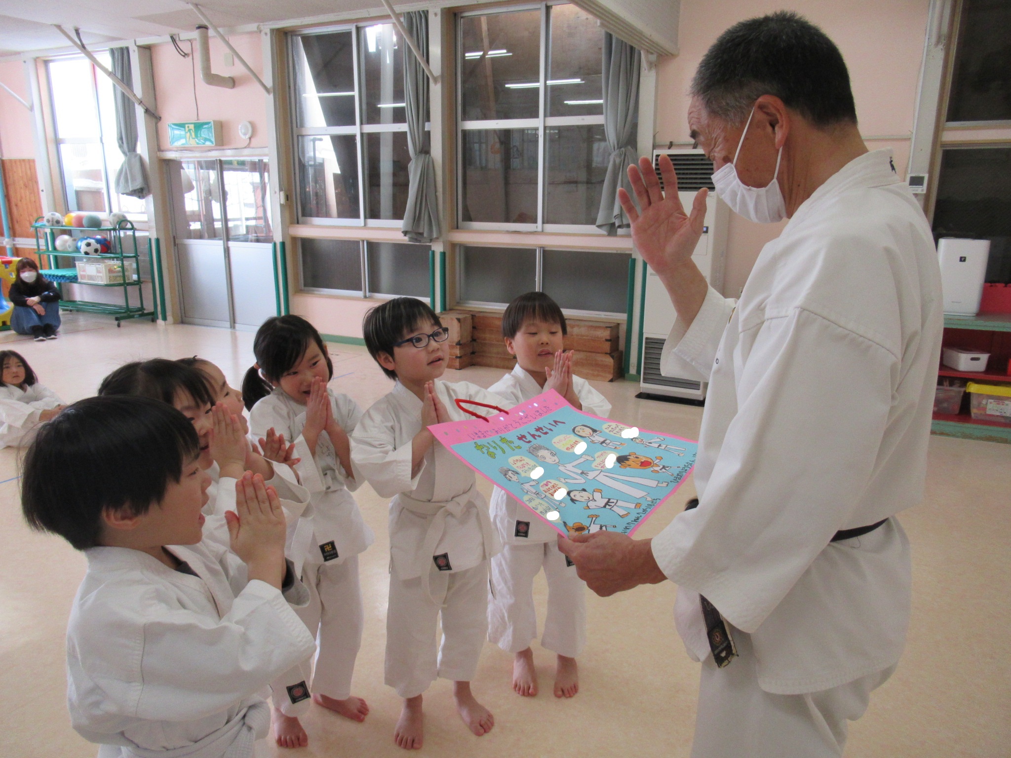 幼稚園で少林寺拳法を教えてもらう最後の日は、講師の先生に感謝の気持ちを書いたメッセージカードを贈りました。