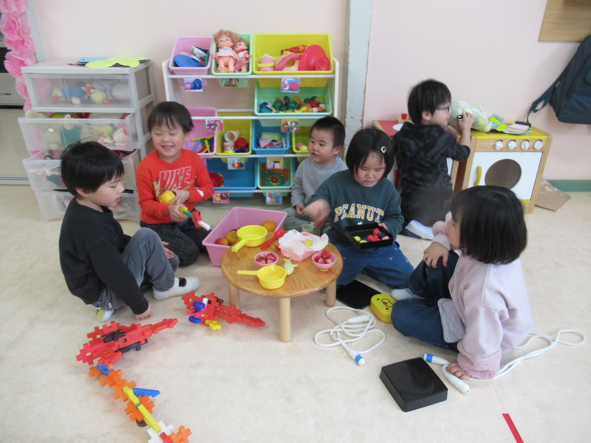 卒園が間近になり、小さいクラスのお友だちと一緒にままごと遊びなどをする姿を