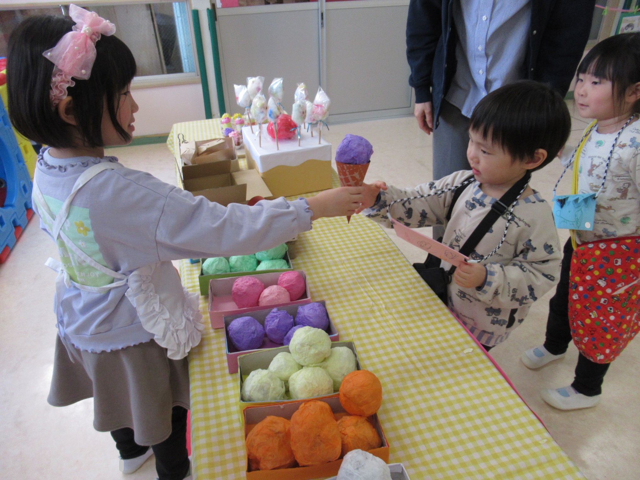 ひよこ組・うさぎ組のみんなにお店屋さんごっこを楽しんでもらうことができて