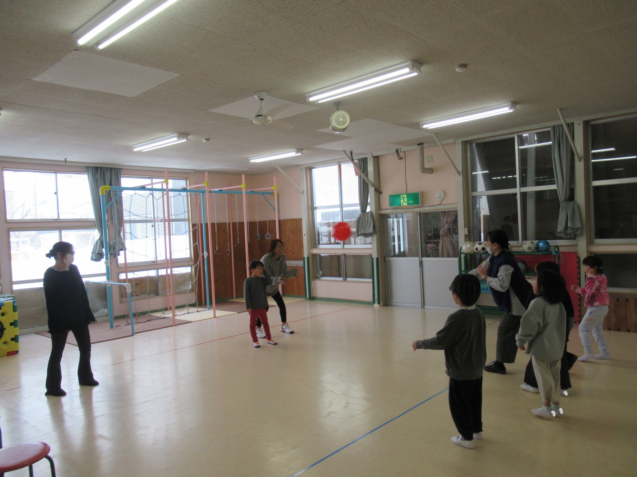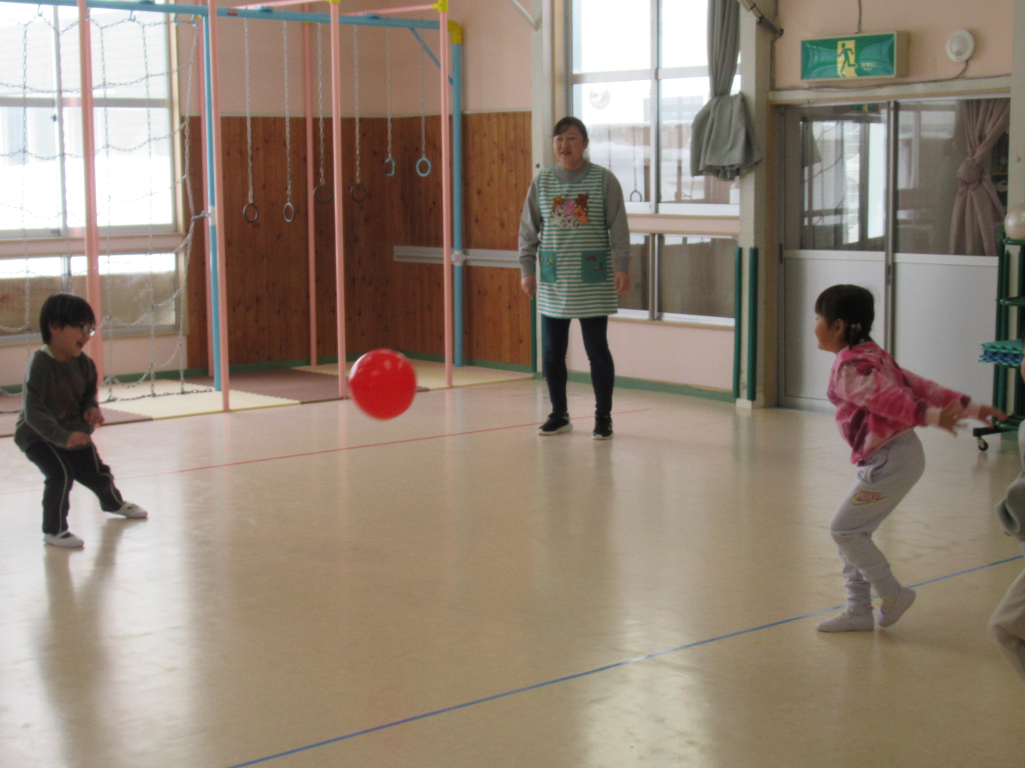 次は、ドッチボールです。3学期は、集団でのゲーム遊びをたのしん