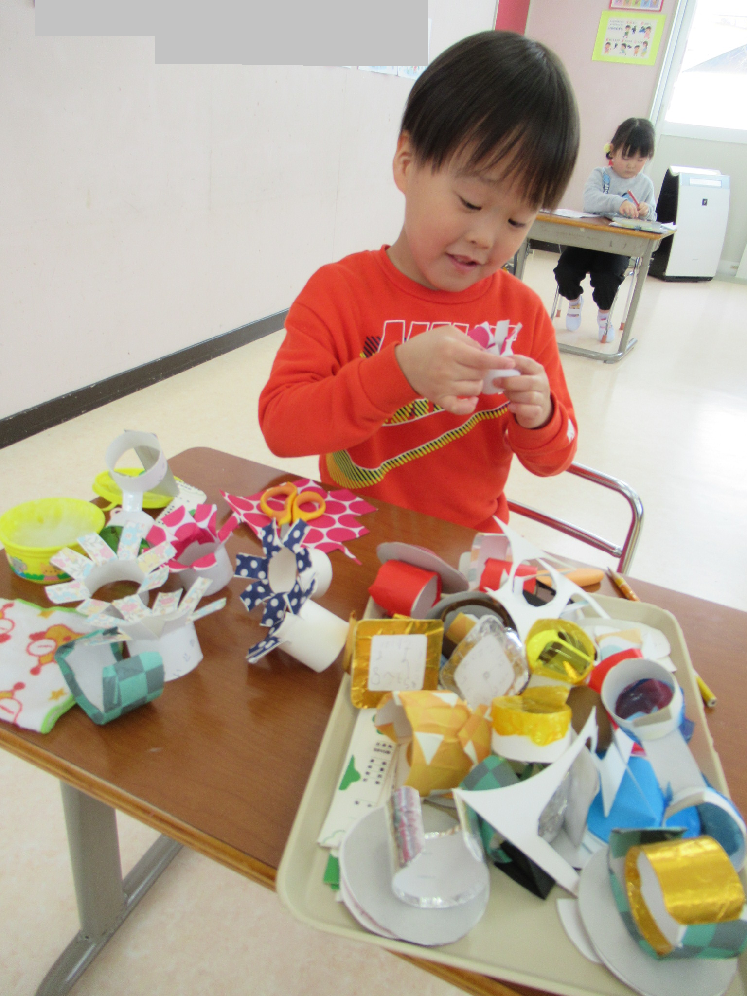 さて、お店屋さんごっこの準備の様子です。