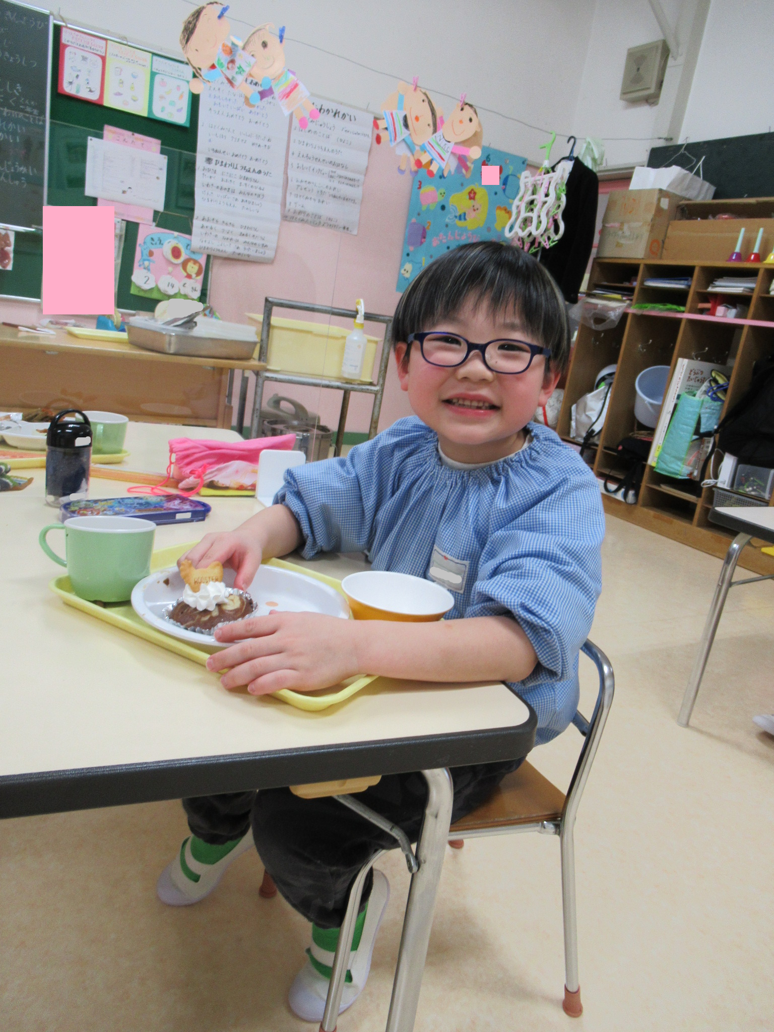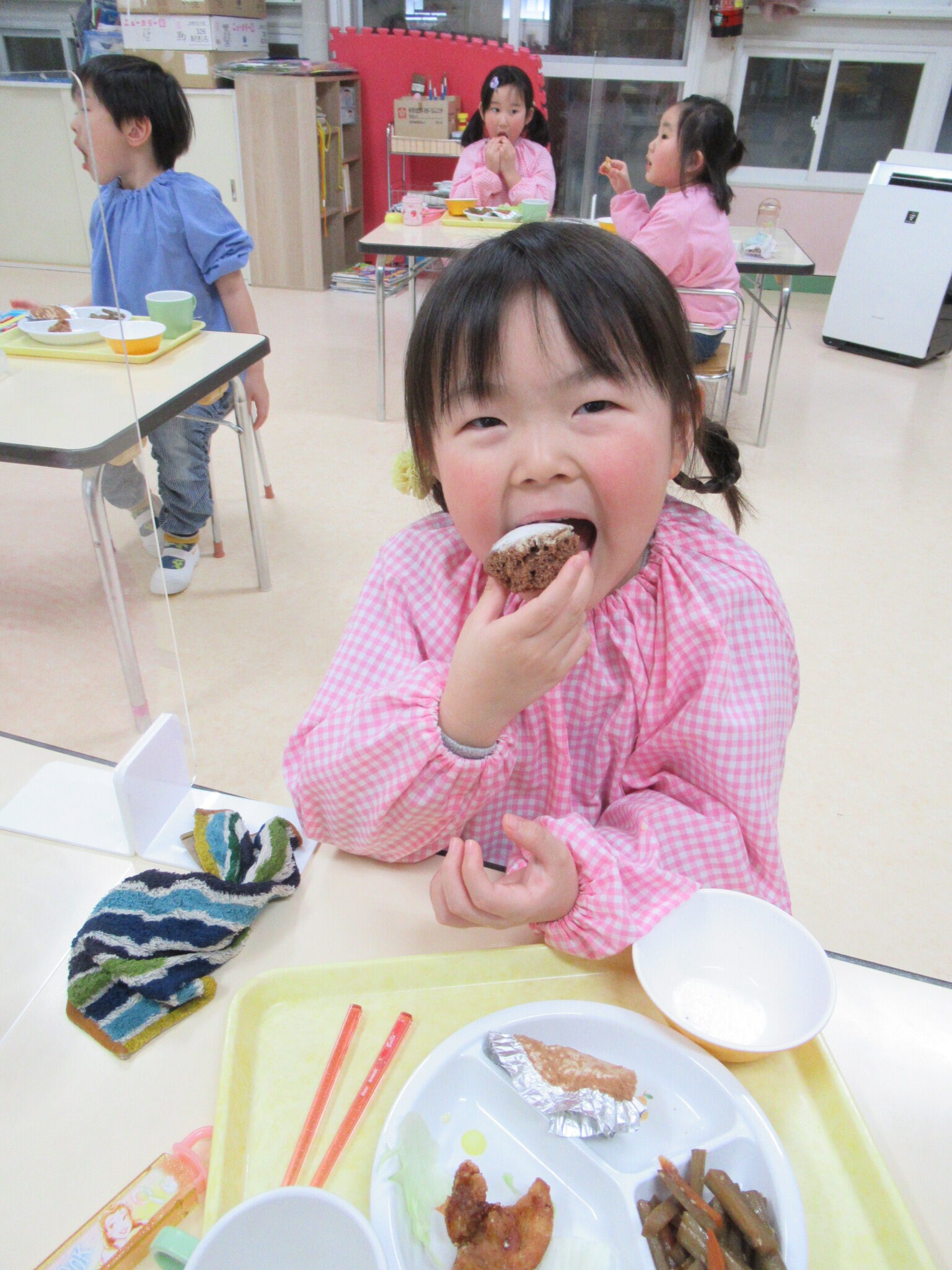 この日は、バレンタインデーだったので、給食にチョコケーキが出ました。
