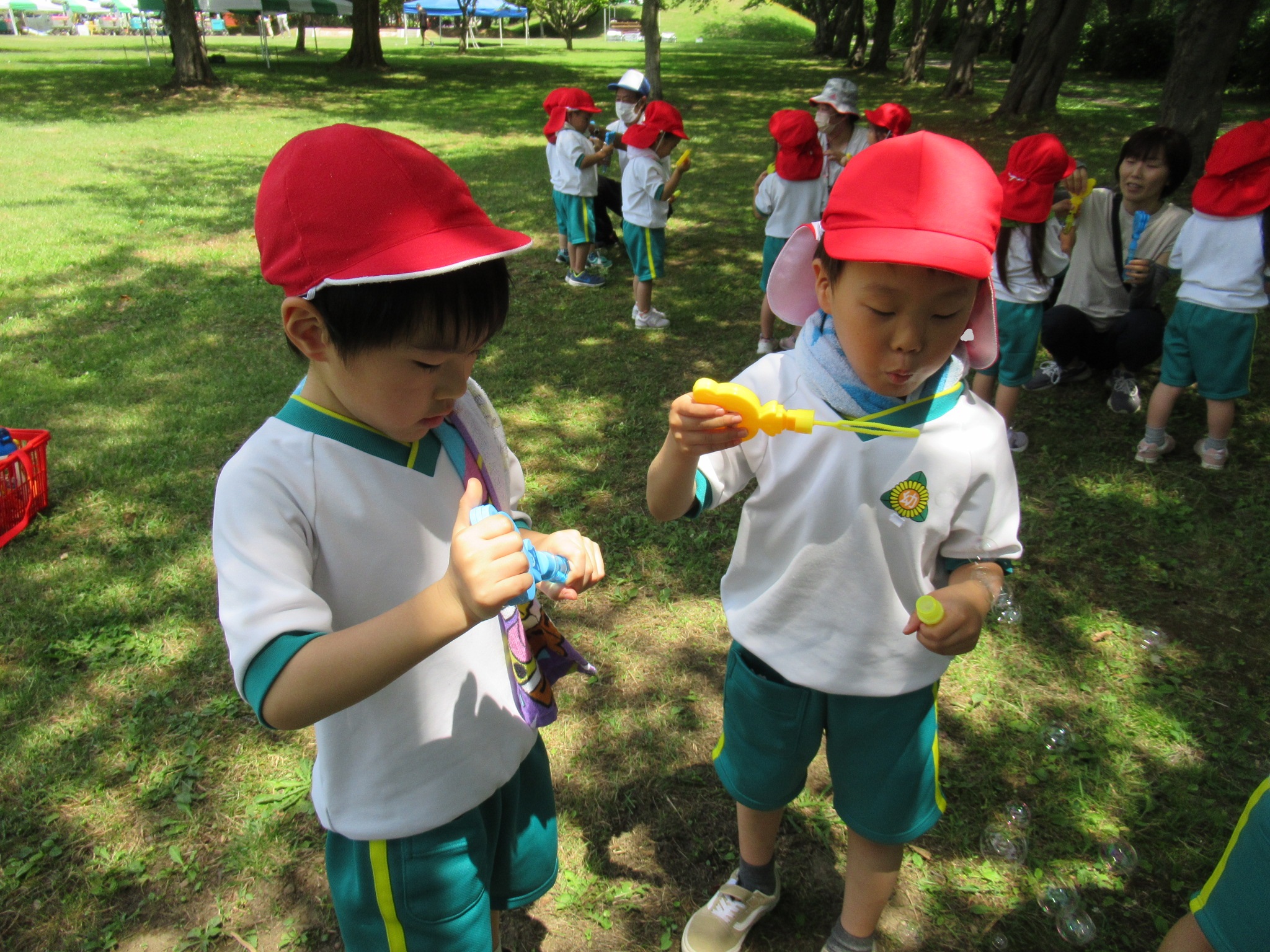 遠足の時にもらう予定だったプレゼントの中から、シャボン玉を出して