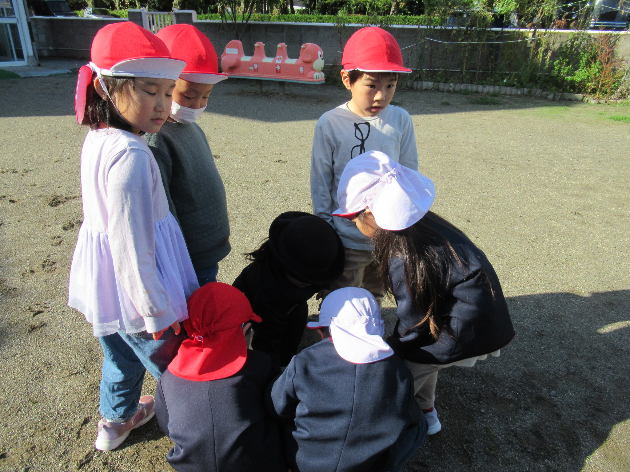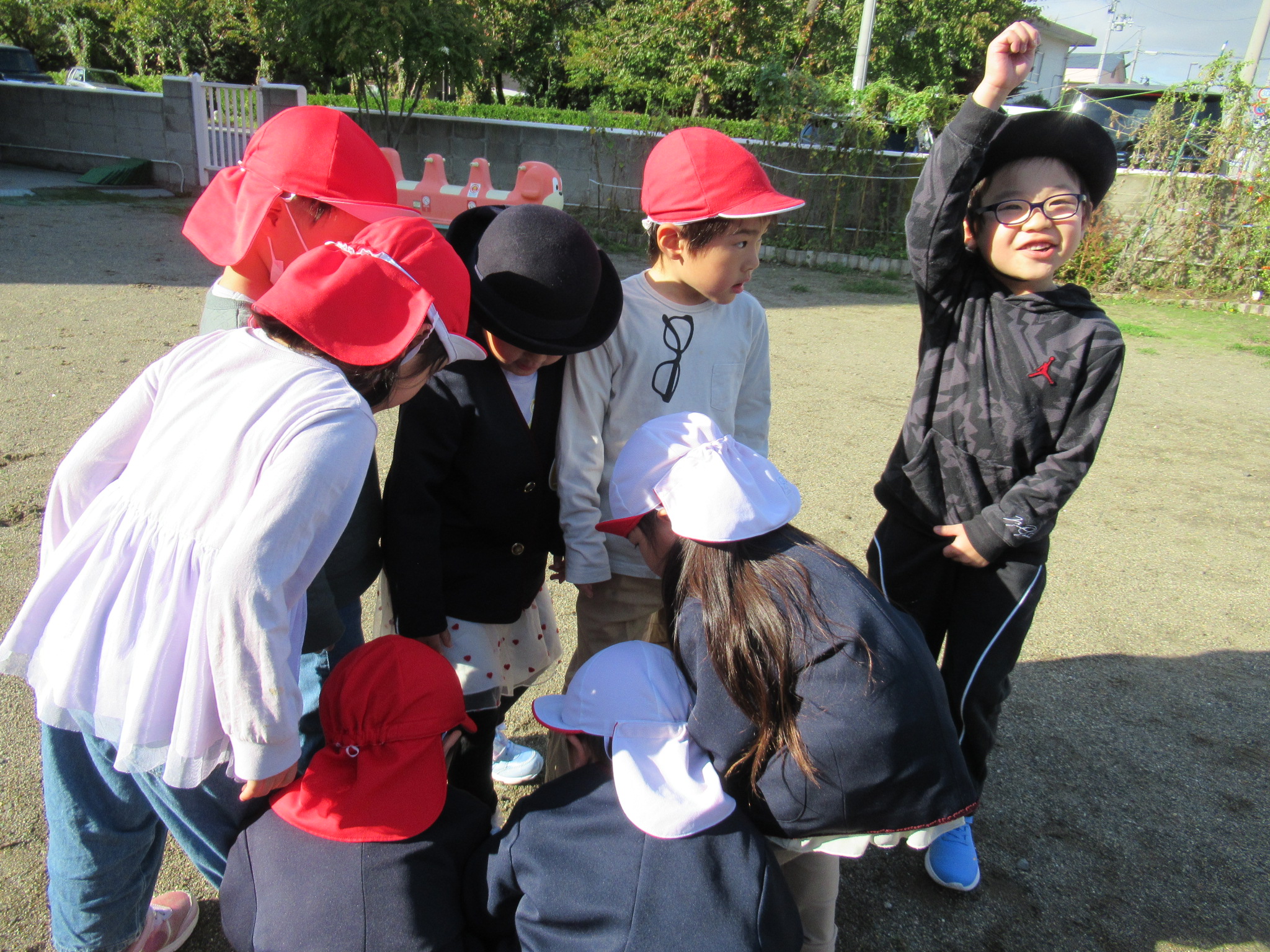 🕊最近の様子👻 朝夕はとても肌寒くなりましたが、 子ども達は、元気いっぱいかけまわっています! ひまわり祭が終わり、普段の生活が戻ってきました。 めんたるぷれいに取り組んでいる様子です。 とても真剣に集中していますね。 お天気の良い日は、園庭で他のクラスのお友だちと一緒に遊んでいます。 鬼ごっこをするので、鬼を決めているところです。 こんなのんびりとした時間も大切にしたいです。