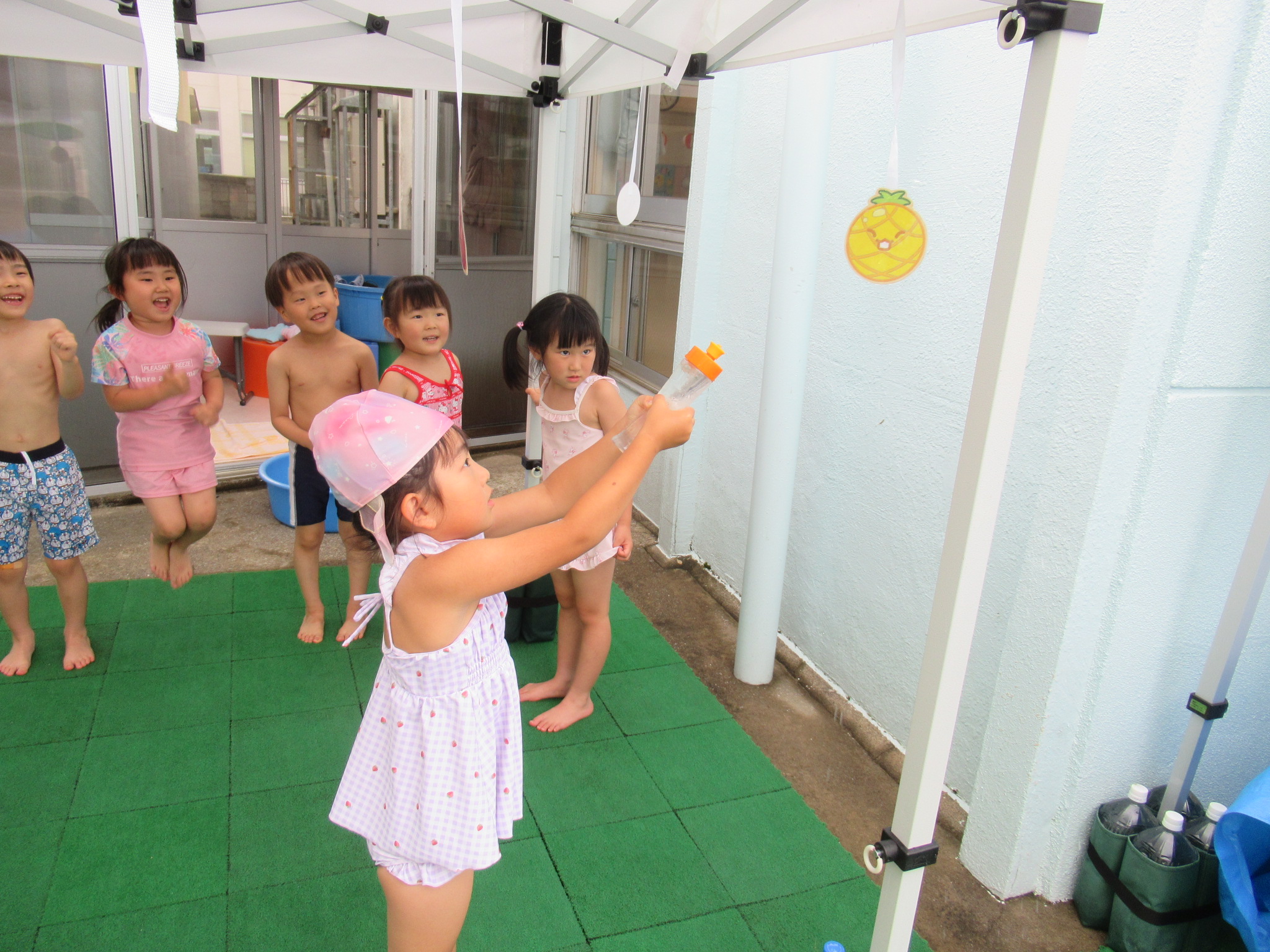 「水鉄砲で落とすんだけどなかなか落とせないな~」
