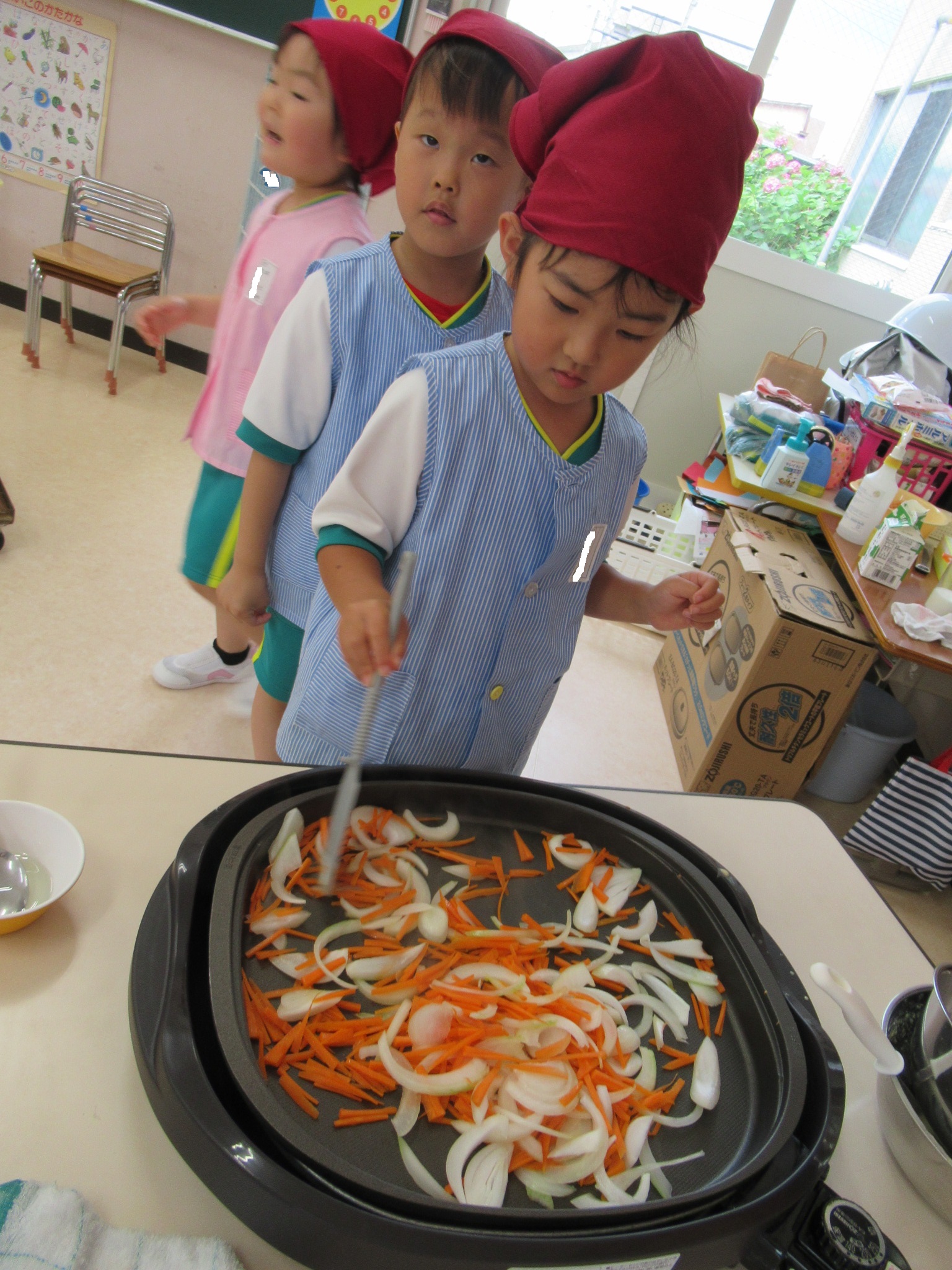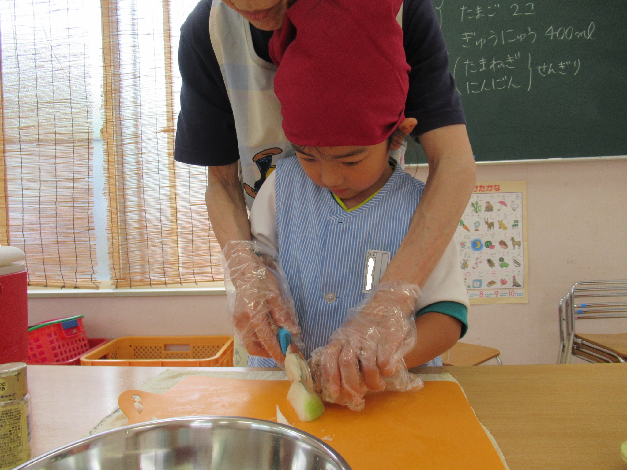 「玉ねぎを切るのは難しい・・・。慎重に!」