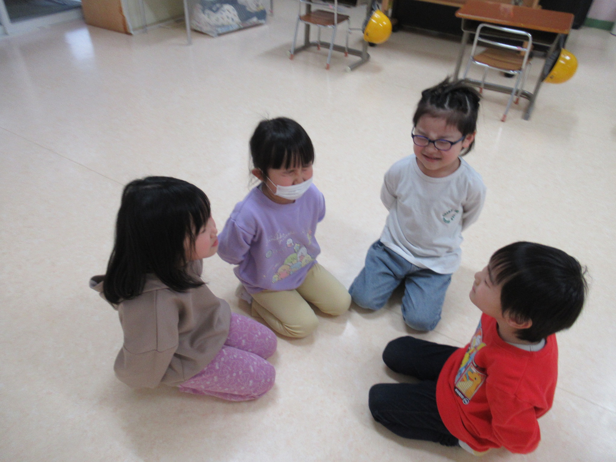 ハンカチ落としや、「オオカミさん今何時?」のゲームや宝探しをしました。