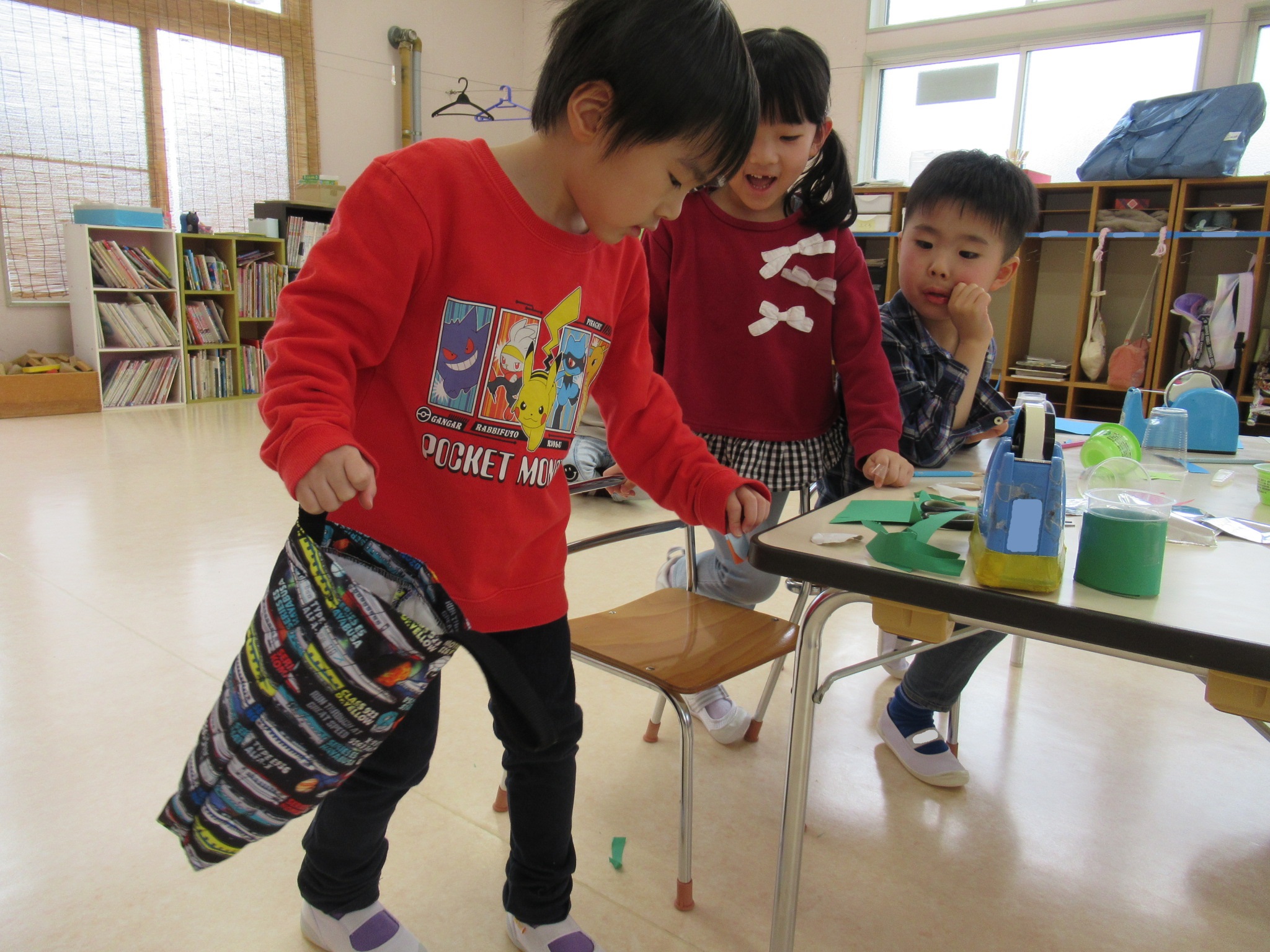 宝探しは、はと組さんも協力してくれて折り紙で作ったいろいろなものを