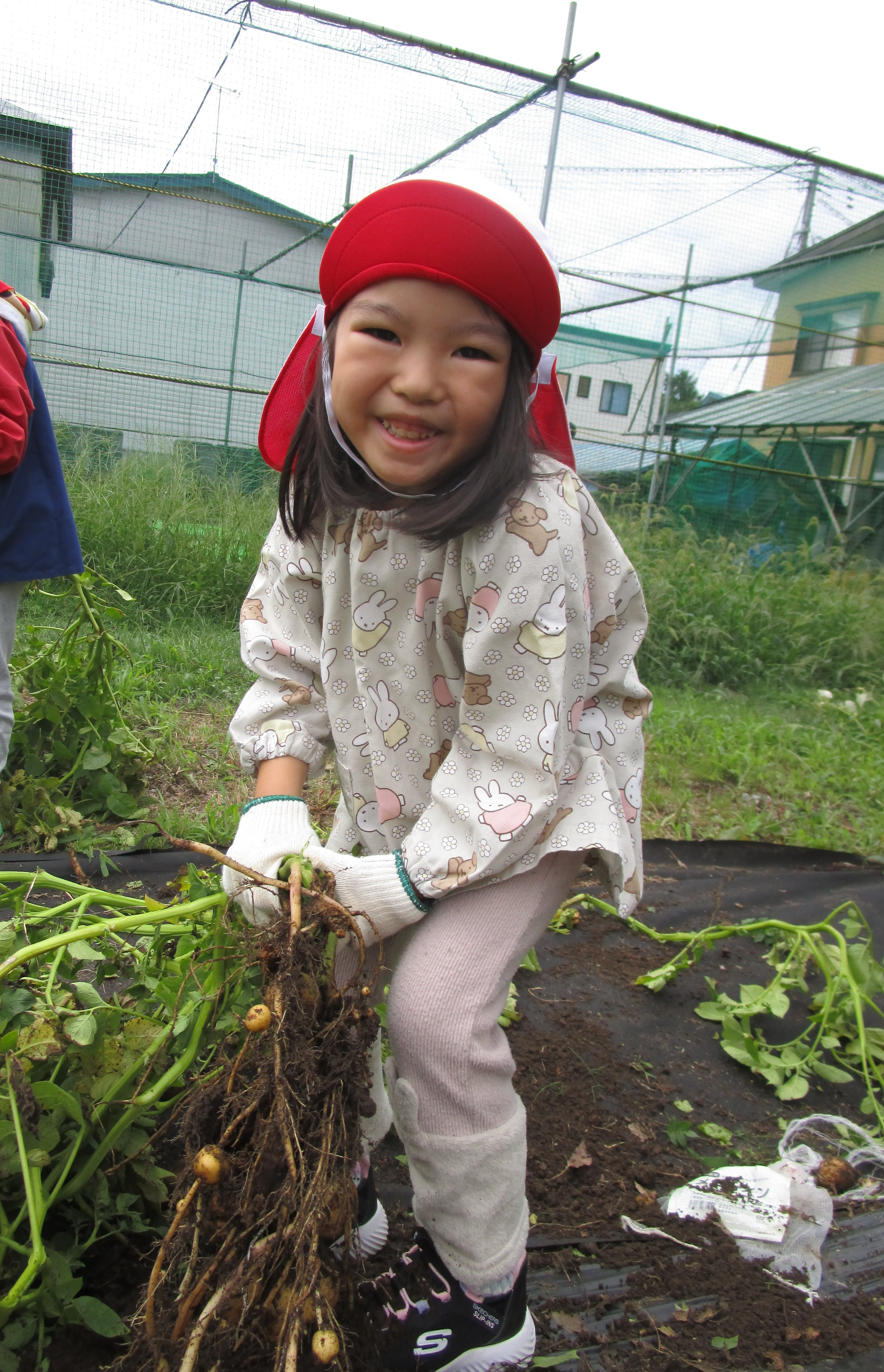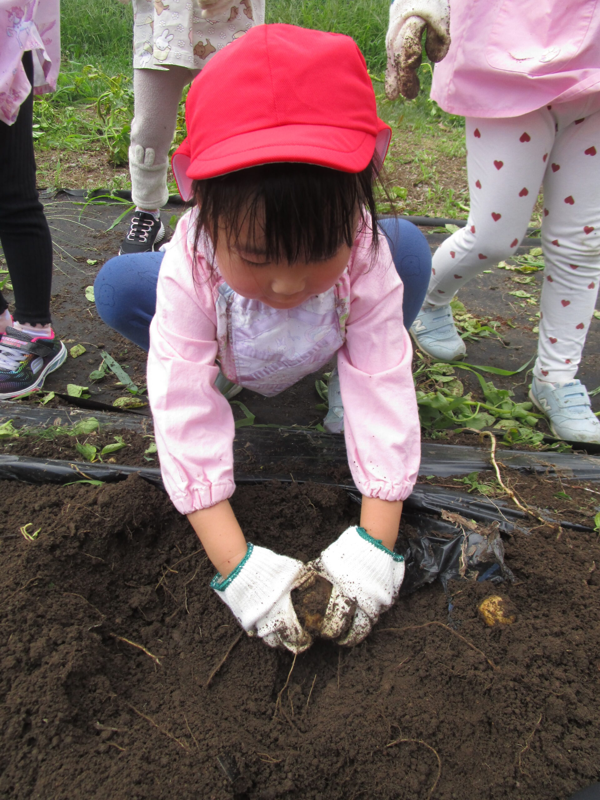 じゃがいもの茎を引っ張って、でてきた!でてきた!じゃがいもさん!