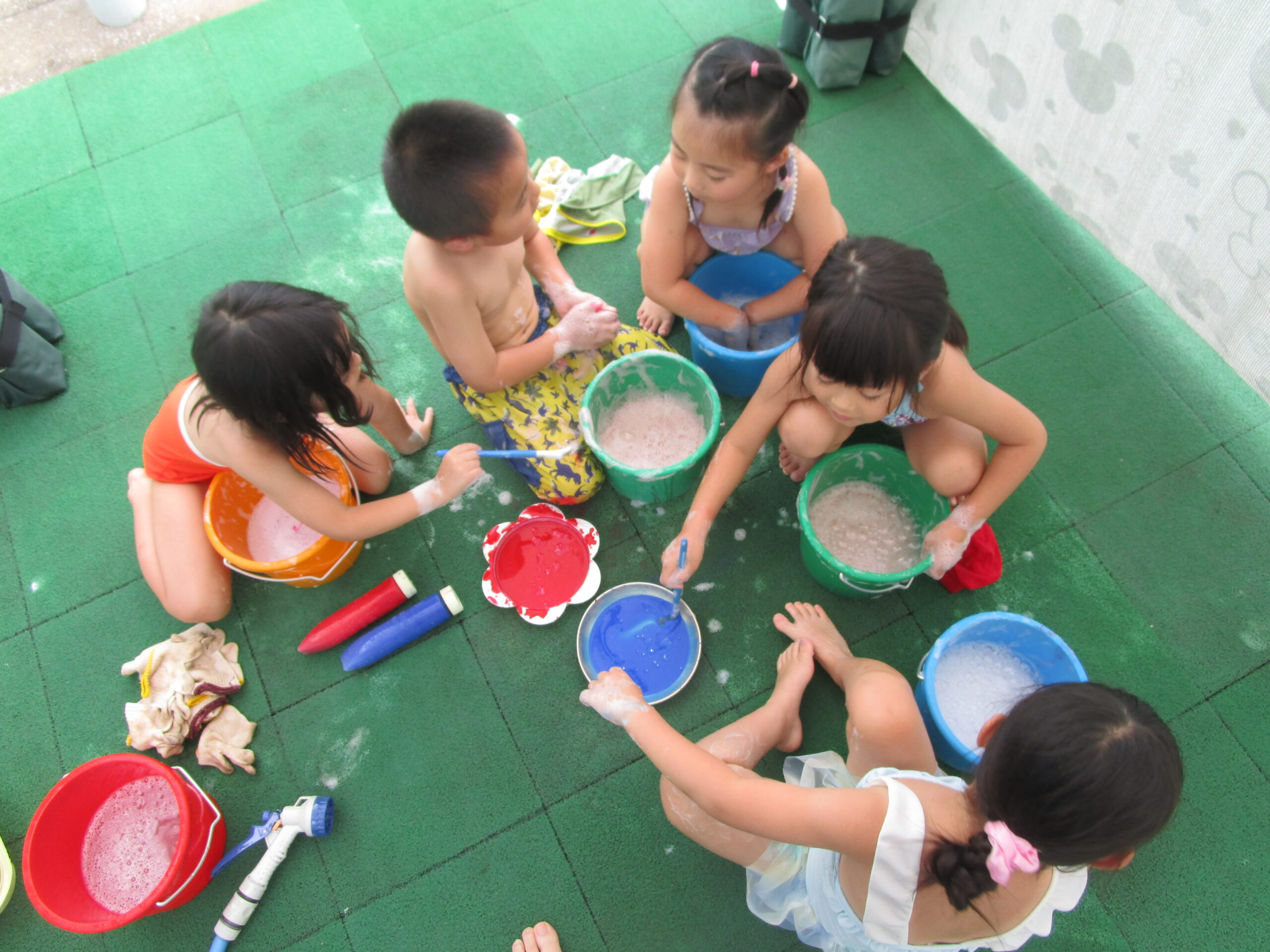 いろいろな色の泡ができて、手だけではなく腕にも泡をつけて遊んだりして、とっても楽しかったです!