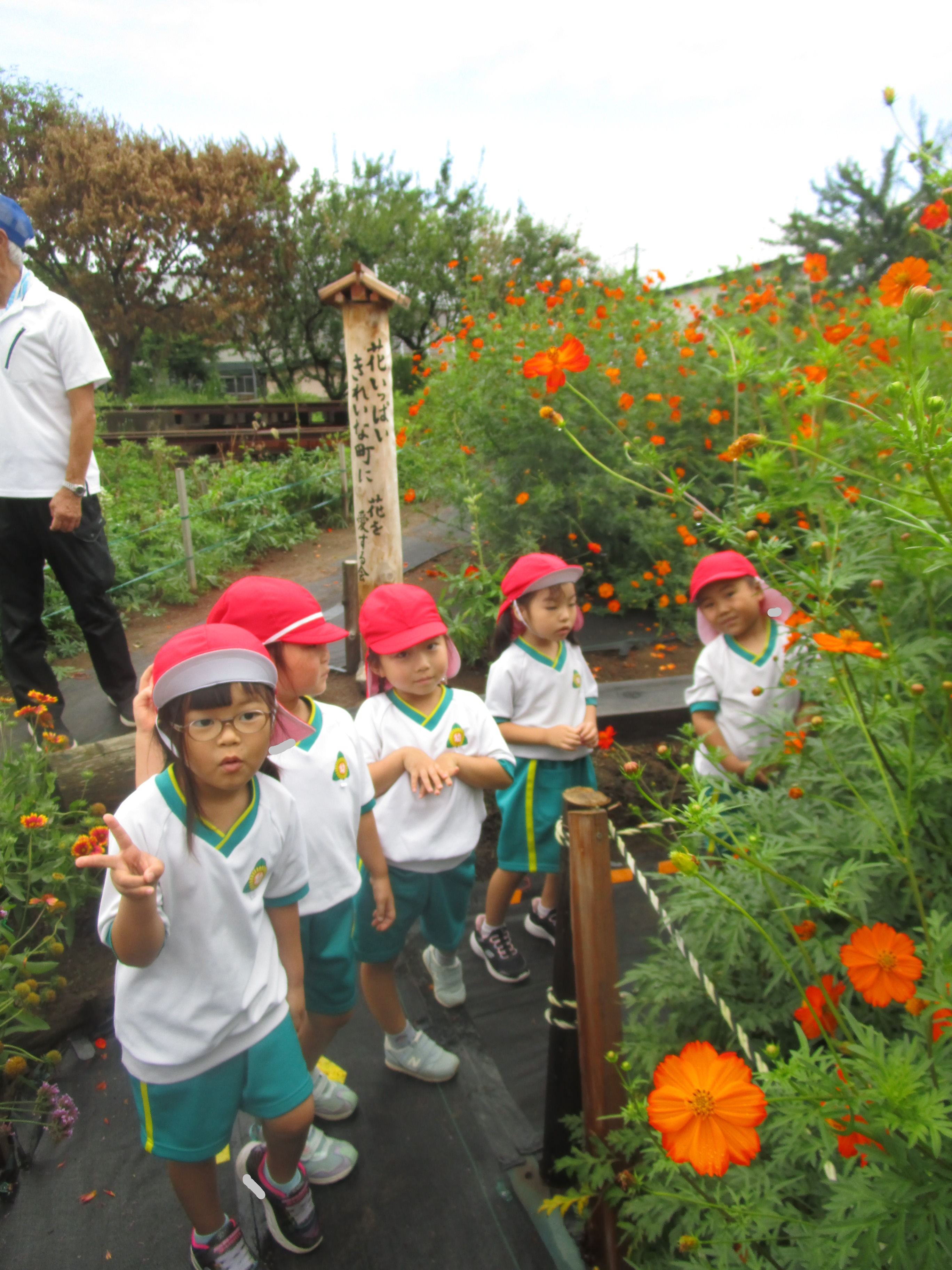 園外保育でキバナコスモスを鑑賞に行った様子です。