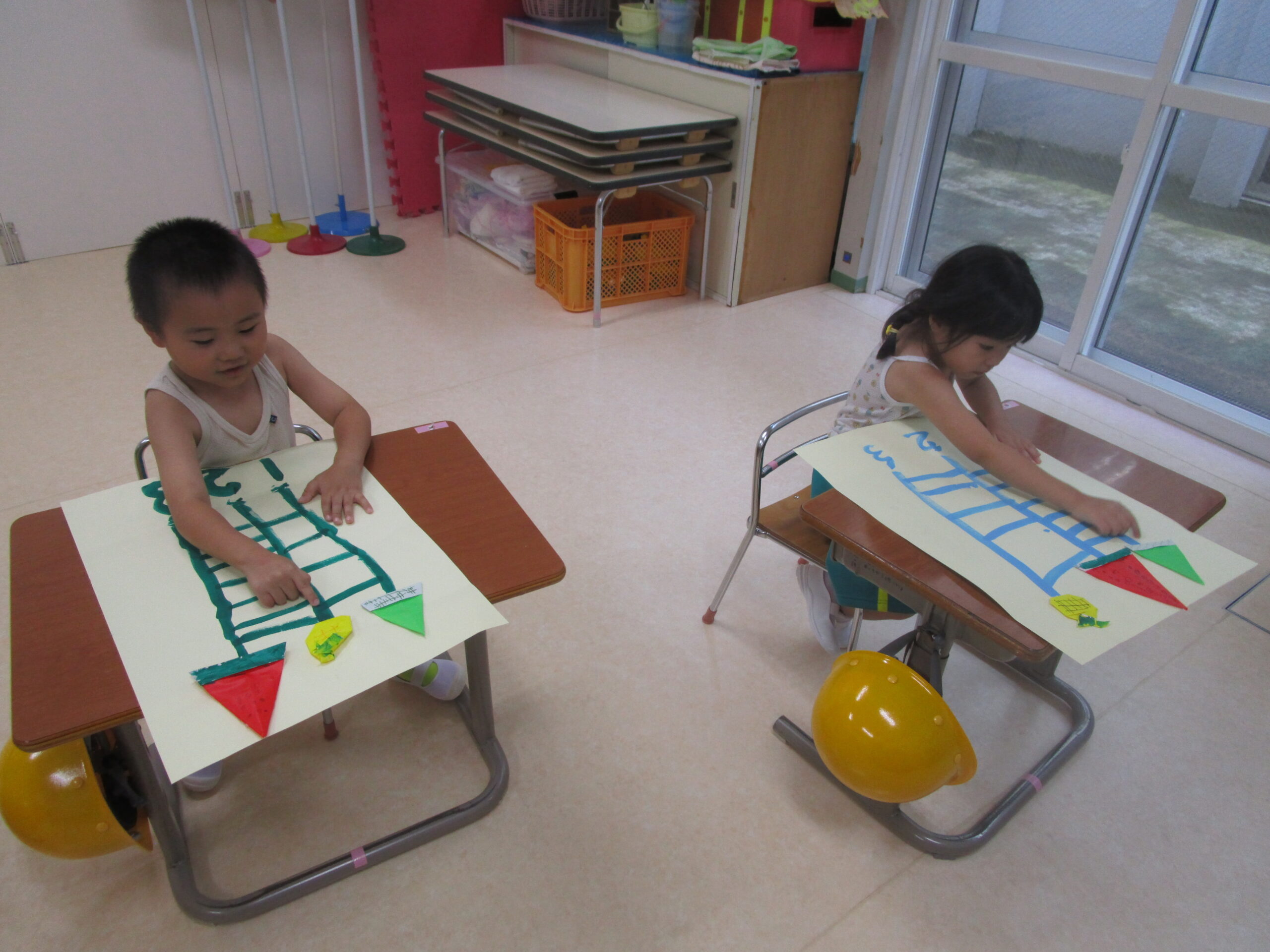 8月の折り紙製作は「あみだくじ」にしました。