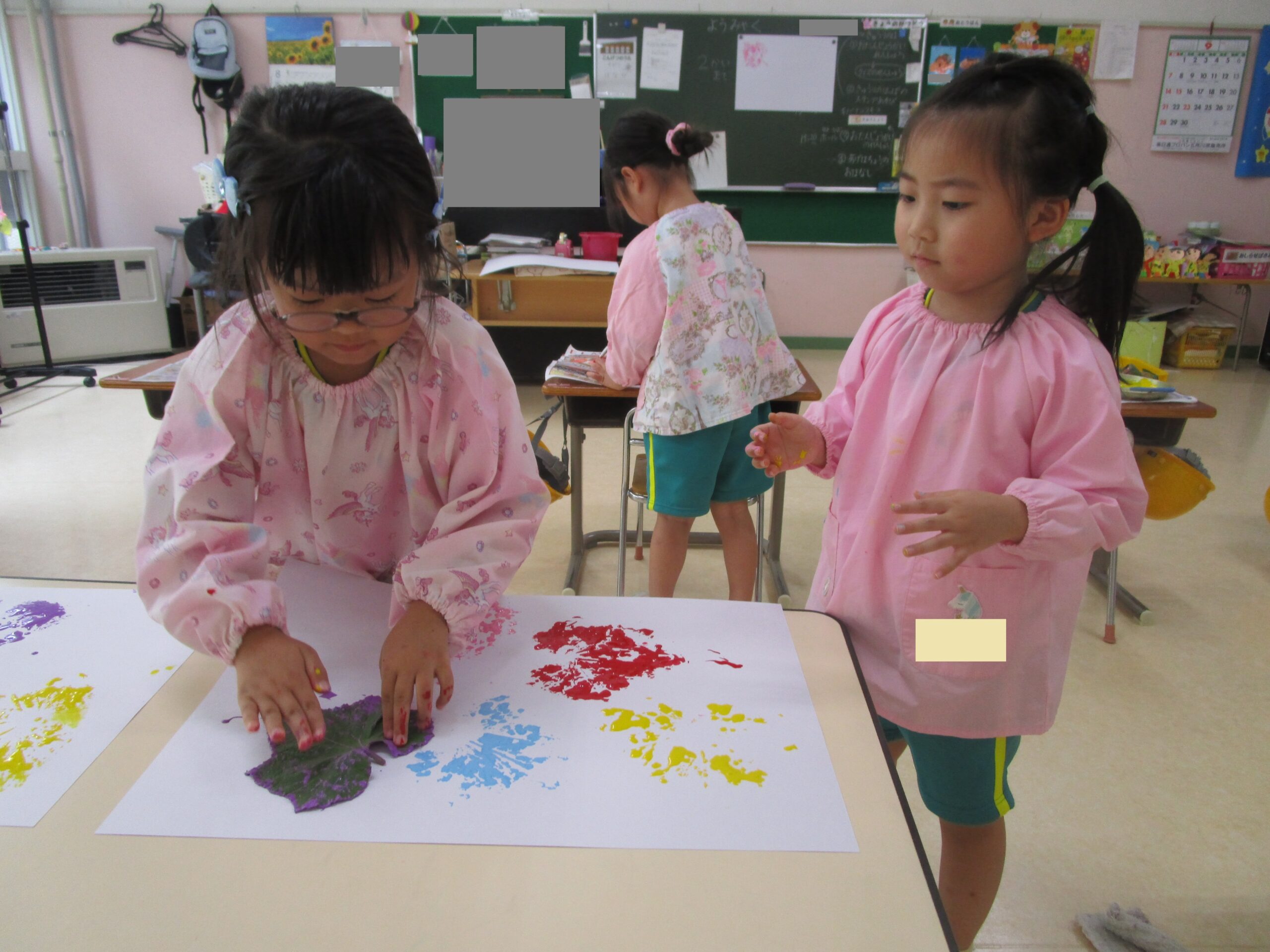 一人ひとり好きな色を決めて、5色の色をみんなで楽しくスタンピングをしました。